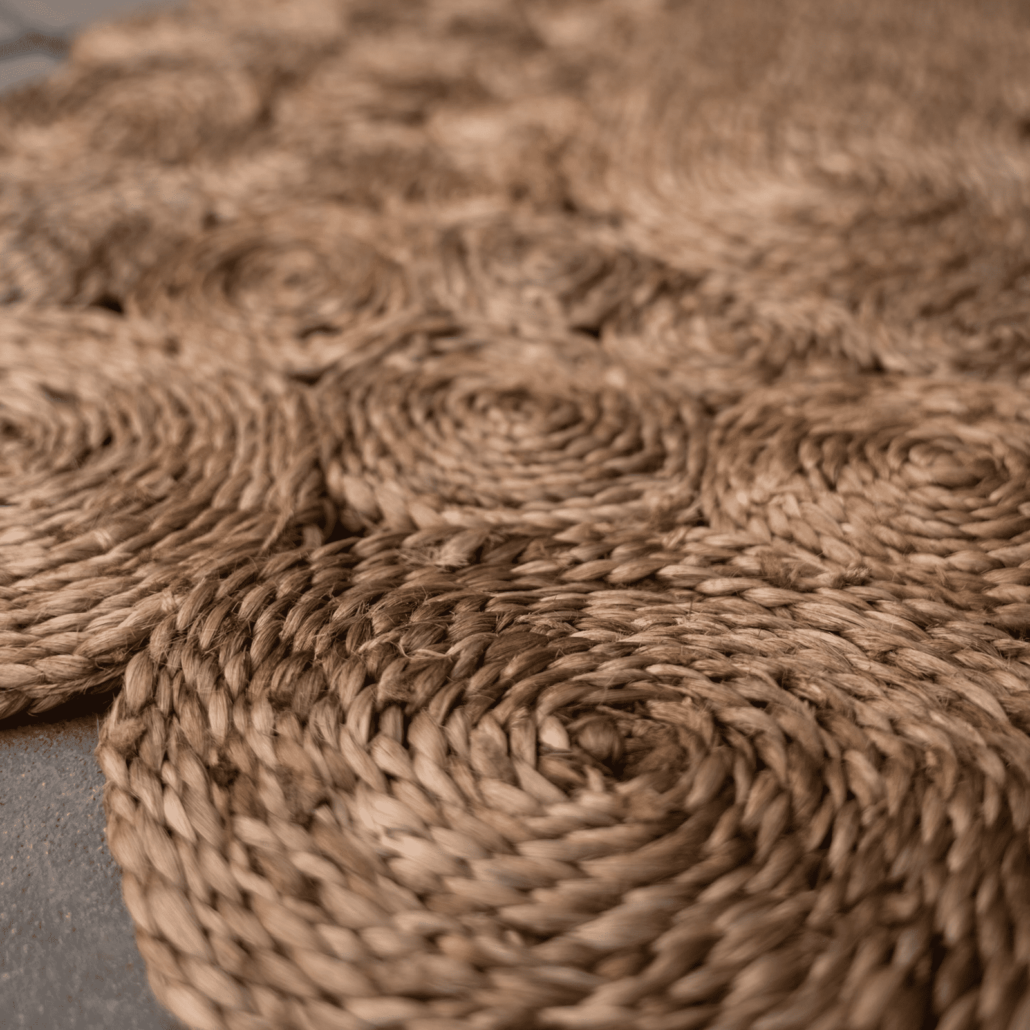Natürlicher Charme für dein Zuhause! Dieser handgeknüpfte Jute-Teppich aus Indien bringt mediterranes Flair in jeden Raum. Mit 90cm Durchmesser und 1cm Stärke ist er perfekt für Wohnzimmer, Schlafzimmer oder als Badezimmerteppich. Aus 100% Naturfaser, biologisch abbaubar und allergiefreundlich. Schmutzabweisend und strapazierfähig - auch für Outdoor auf Terrasse oder Balkon geeignet. Passt zu Fußbodenheizung und ist einfach durch Absaugen zu reinigen. Echt Handarbeit, keine Massenware - jedes Stück ein Unikat. Schaffe dir eine gemütliche Wohlfühl-Oase mit diesem natürlichen Blickfang!