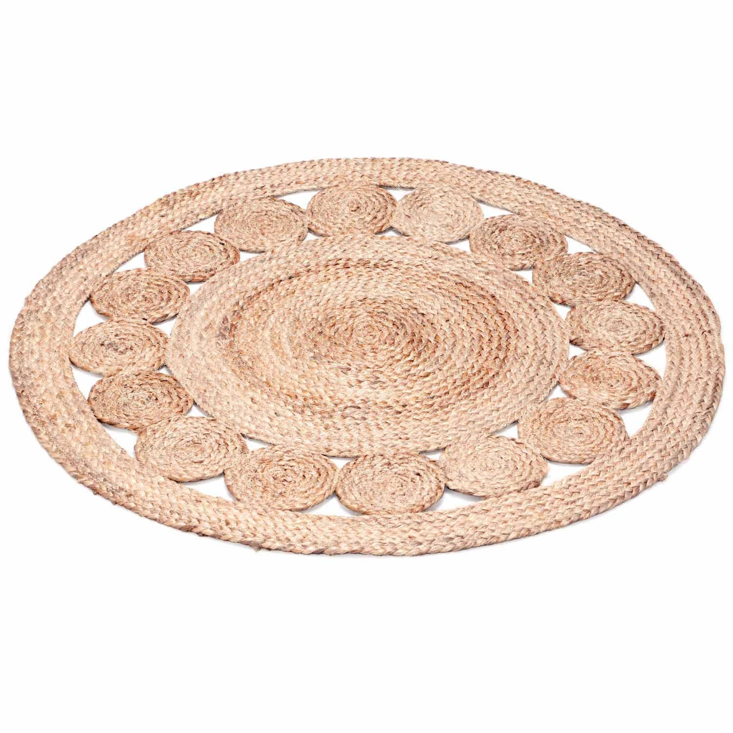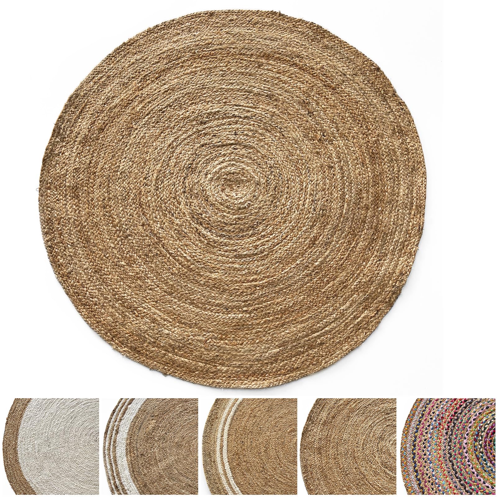 Rita Rugs Home Jute Teppich Rund - Handgewebter Naturteppich 100cm Für Wohnzimmer