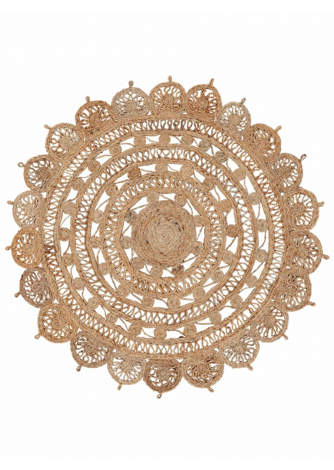Dieser runde Jute-Teppich von Rita Rugs Home bringt Natur-Charme in dein Zuhause! 100 cm Durchmesser, handgewebt in Indien - jedes Stück ein Unikat. Perfekt für Wohnzimmer, Schlafzimmer oder Küche im Bauernhaus- oder Boho-Stil. 100% natürliche Jute, robust und pflegeleicht. Einfach absaugen und Flecken mit feuchtem Tuch entfernen. Hol dir diesen nachhaltigen Eyecatcher!