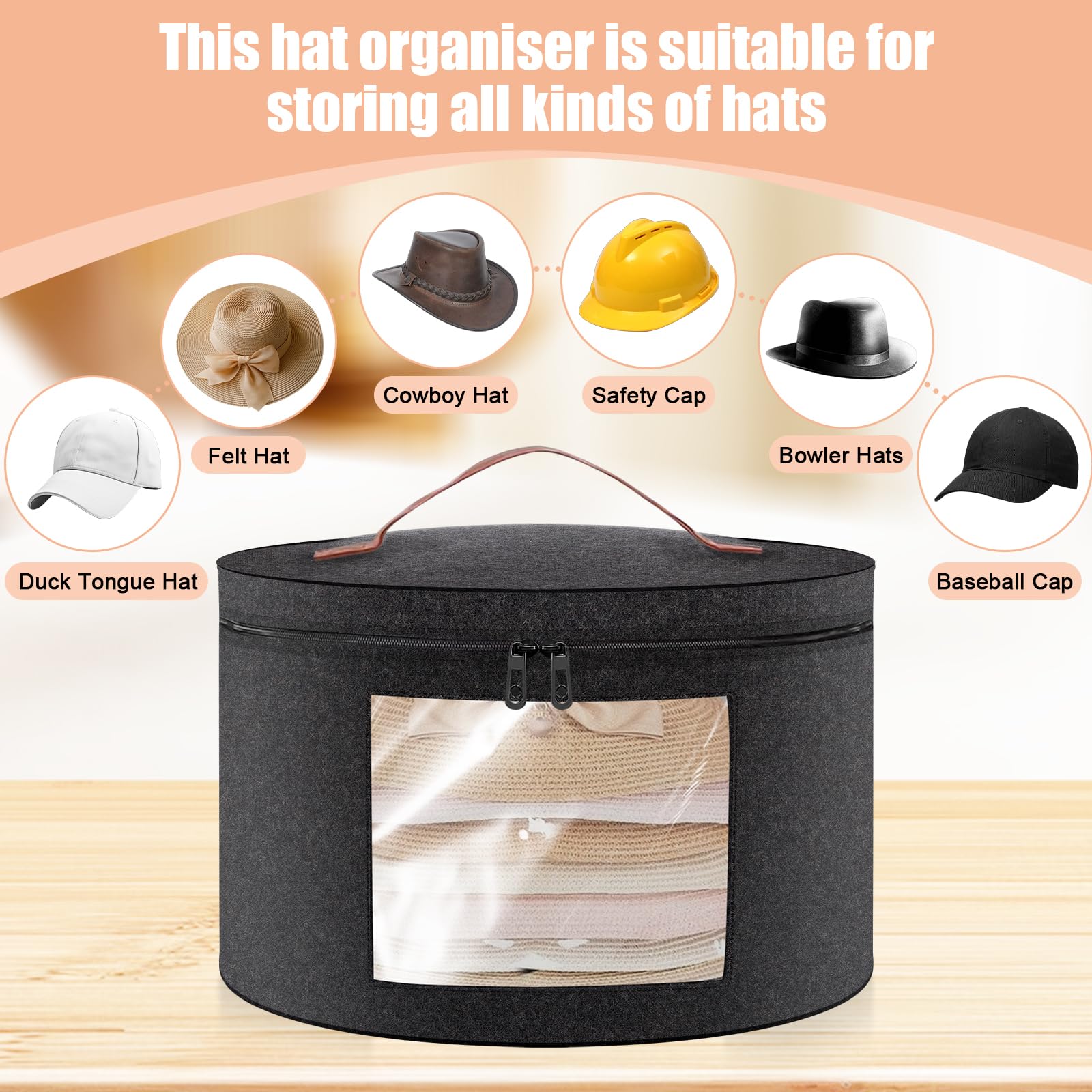 Endlich die perfekte Lösung für deine Hut-Sammlung! Diese runde Hutschachtel aus weichem Filz schützt deine Hüte vor Staub und Verformungen. Das transparente Fenster ist super praktisch - du siehst sofort, welcher Hut drin ist, ohne öffnen zu müssen. Mit 43x26 cm Größe passen auch mehrere Hüte rein. Der Reißverschluss und der Ledergriff machen die Handhabung total easy. Und wenn du sie nicht brauchst, klappst du sie einfach zusammen - platzsparend! Übrigens nicht nur für Hüte geeignet, sondern auch perfekt für Schals, Handschuhe oder Plüschtiere. Ein echter Allrounder für mehr Ordnung!