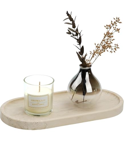 Nbeads Marmor Tablett Rund - Natürlicher Travertin Schmuckteller 15cm