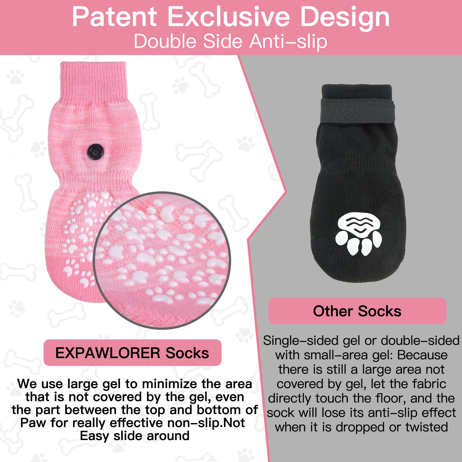 EXPAWLORER Anti-Rutsch Hundesocken 2 Paar - Doppelseitiger Grip Für Pfotenschutz Innen & Draußen