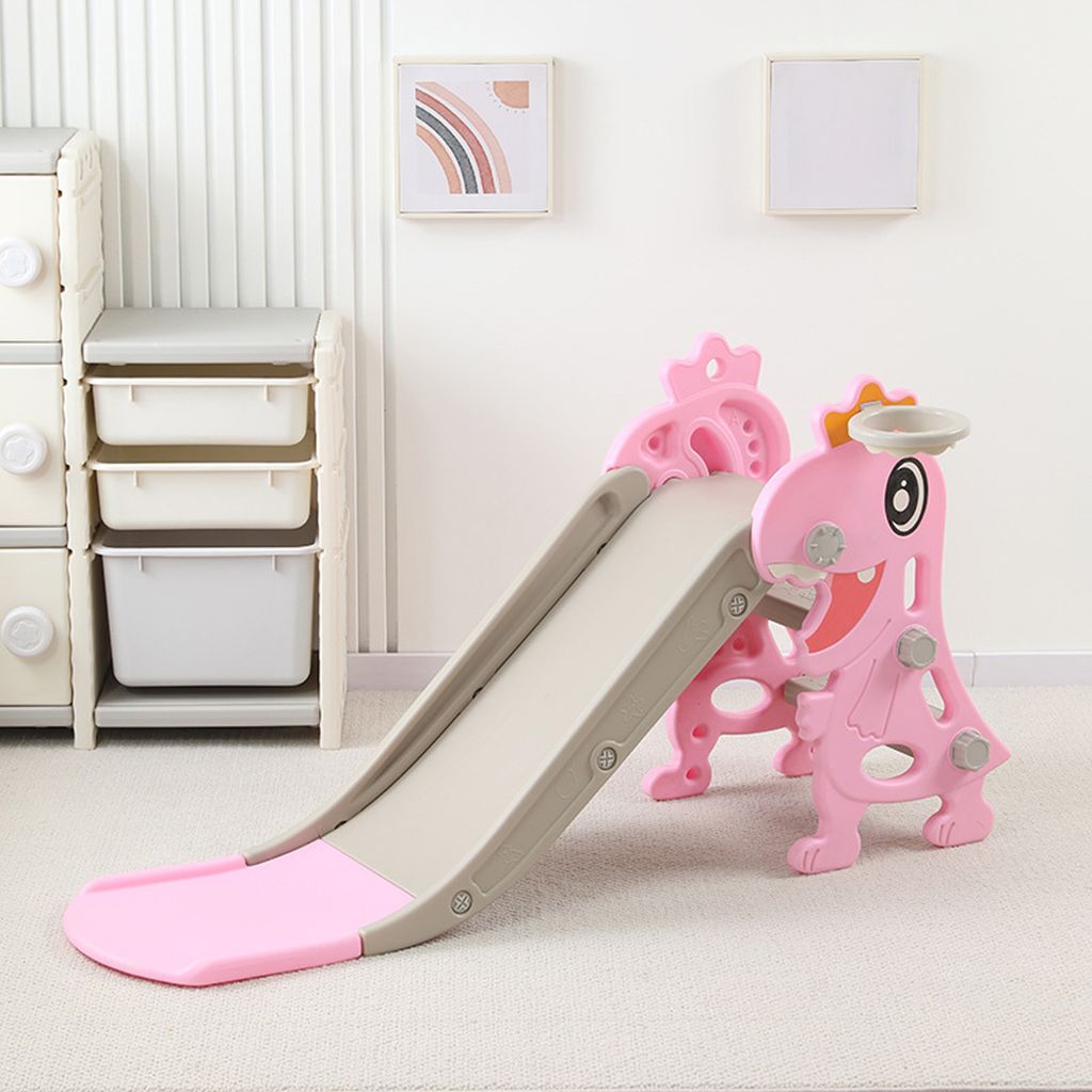 Kinderrutsche Mit Basketballkorb - Faltbare Indoor/Outdoor Rutsche Ab 1-3 Jahre (Dinosaurier Rosa)