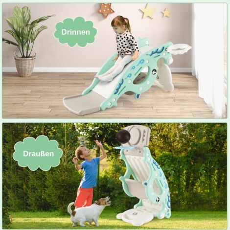 Das ultimative Spielvergnügen für Kinder ab 3 Jahren! Diese 4-in-1 Rutsche von FANTASK verwandelt sich mühelos in ein Schaukelpferd, eine Rutsche oder einen Basketballkorb. Mit Ringwurf-Spiel und inklusive Basketball sowie 3 Ringen ist der Spielspaß garantiert. Aus stabilem PE-Material gefertigt und mit einer Tragkraft von 50kg hält die Rutsche auch wildem Spielstand. Die Höhe von 94cm ist perfekt für Kleinkinder, und die abgerundeten Kanten sorgen für Sicherheit. Ob drinnen oder draußen - hier können Kinder rutschen, schaukeln, Körbe werfen und Ringe werfen. Der klappbare Basketballkorb spart Platz bei der Aufbewahrung. Einfach aufbauen und staunen, wie viel Freude dieses Spielzeug bereitet!