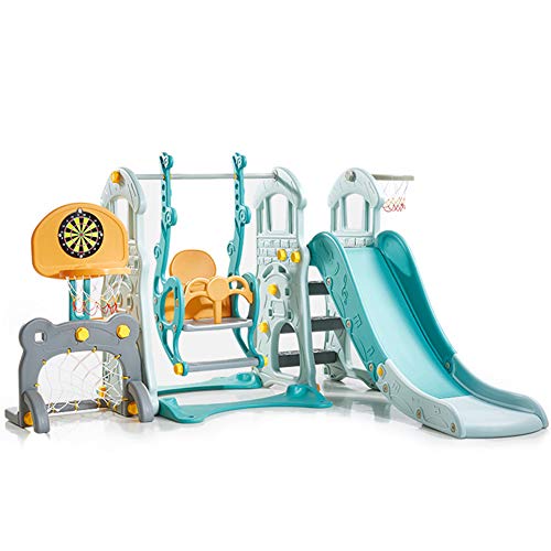 Das ultimative Spielparadies für deine Kinder! Dieses 8-in-1 Spielset hat alles: Rutsche, Schaukel, Whiteboard, Basketballkorb, Teleskop, Kletterleiter, Turnringe und Kletterstangen. Aus stabilem HDPE-Kunststoff - sicher und langlebig. Die abgerundeten Kanten und rutschfesten Stufen sorgen für maximale Sicherheit. Das Whiteboard mit Stiften und Radierer fördert die Kreativität. Perfekt für drinnen und draußen - deine Kinder können klettern, rutschen, schaukeln und malen. Fördert Motorik, Gleichgewicht und Koordination. EU-sicherheitsgeprüft - also alles paletti. Wichtig: Vergiss nicht die Gegengewichtsbeutel an der Leiter zu befestigen und regelmäßig alle Schrauben zu checken. Deine Kids werden stundenlang beschäftigt sein und dabei ganz nebenbei was lernen. In grün erhältlich - sieht auch noch toll aus!