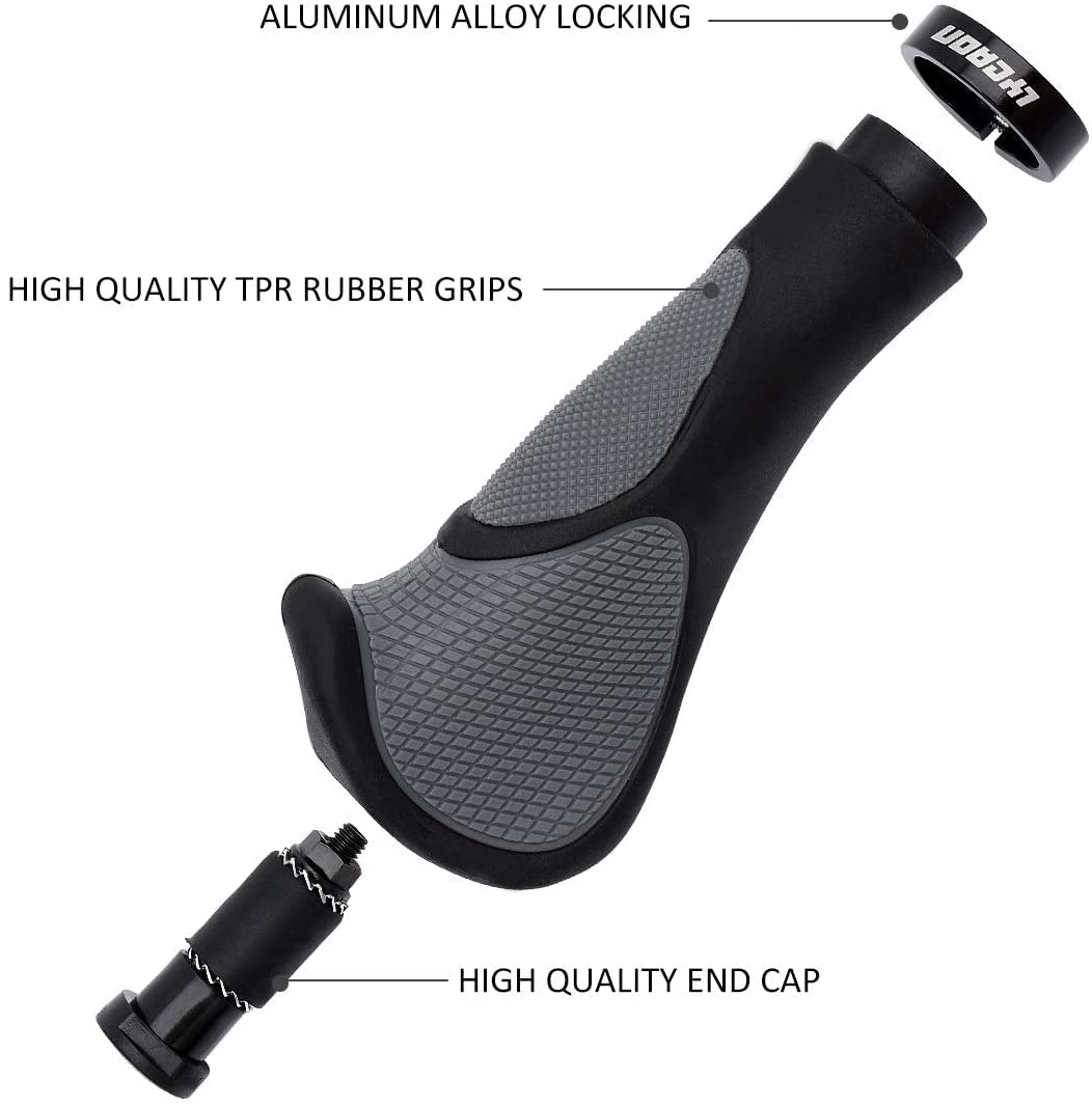 LYCAON Fahrradgriffe Ergonomisch - Rutschfeste MTB Griffe Mit Aluminium-Verschluss