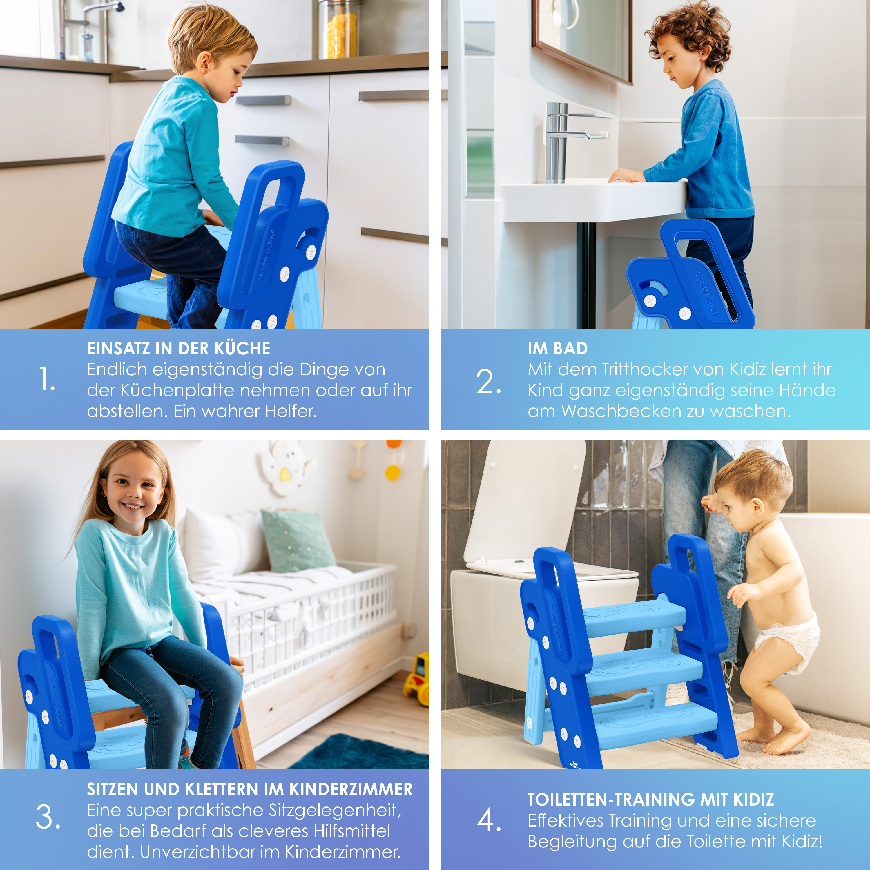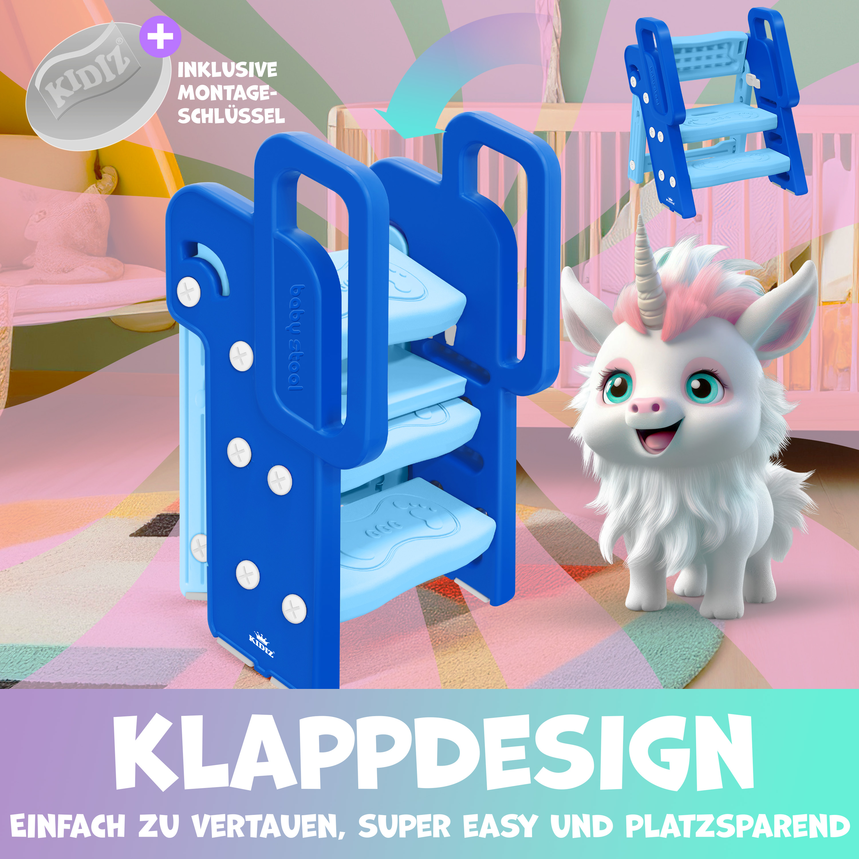Dieser faltbare Tritthocker macht dein Kind selbstständig! Mit den Maßen 30,5x32,5x32cm (aufgeklappt) hilft er deinem Kleinen, höhere Stellen wie Waschbecken, Toilette oder Küchentheke sicher zu erreichen. Die rutschfesten Oberflächen und die gummierten Basis sorgen für maximalen Halt und Stabilität. Das zweistufige Design ermöglicht ein einfaches und sicheres Hochklettern. Wenn nicht gebraucht, einfach zusammenklappen und platzsparend verstauen - super praktisch für unterwegs oder zu Hause! Aus robustem PP-Material gefertigt, das lange hält. Perfekt fürs Badezimmer, Kinderzimmer oder die Küche. Gib deinem Kind die Freiheit, die Welt aus einer neuen Perspektive zu entdecken - sicher und selbstbewusst!