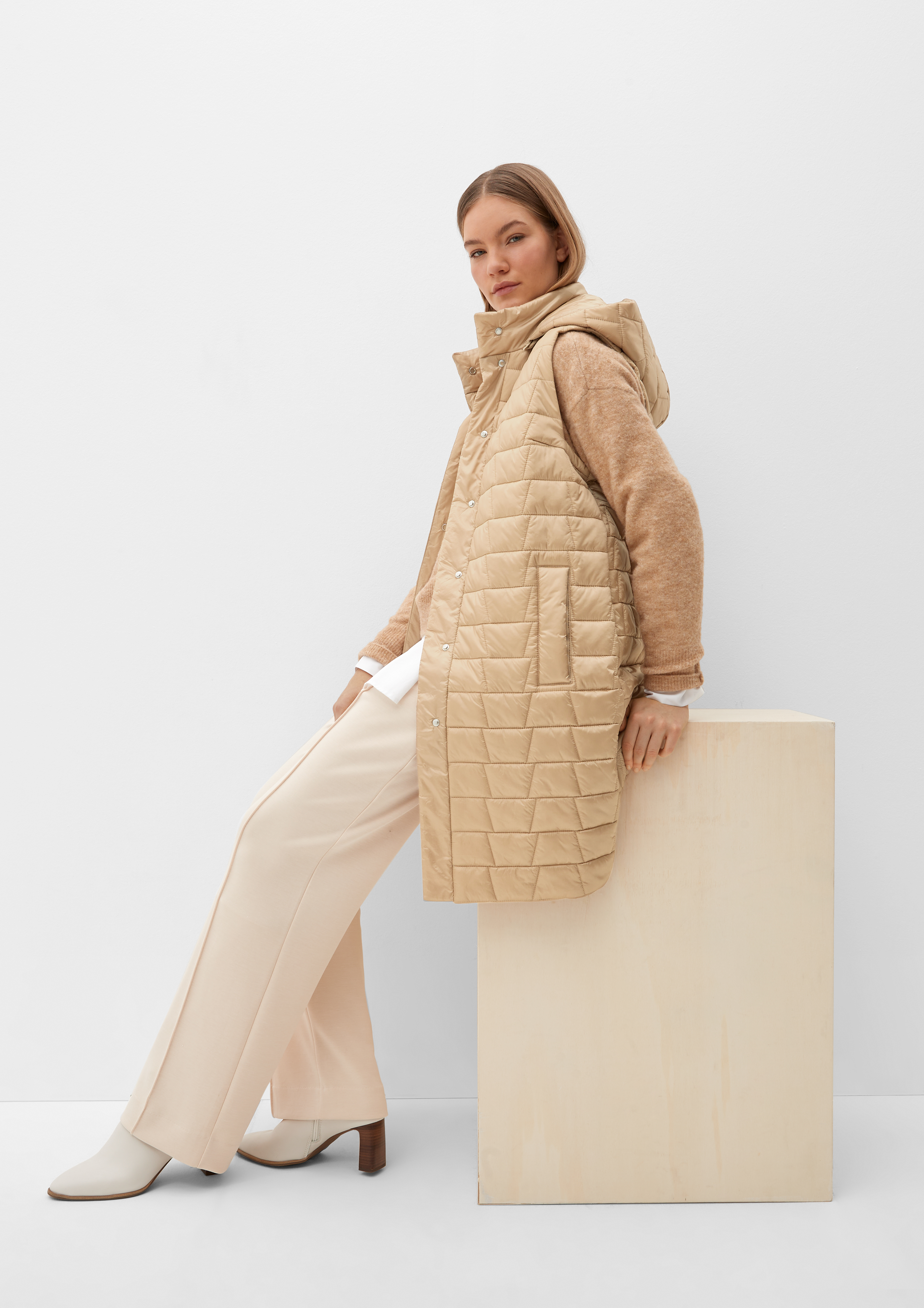 S.Oliver Lange Steppweste Damen - Wattiert Mit Abnehmbarer Kapuze