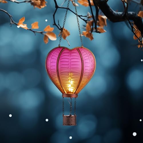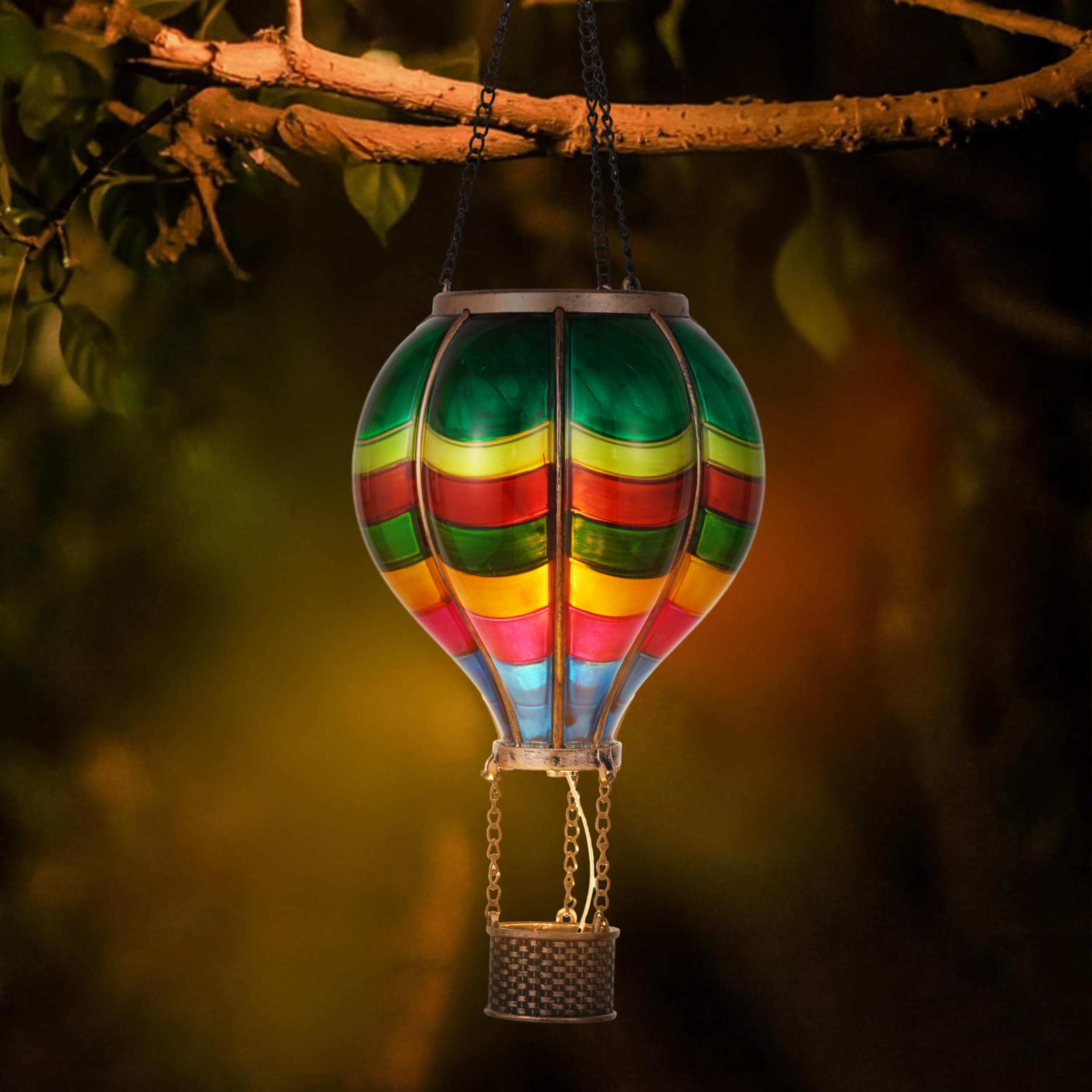 TERESA'S COLLECTIONS Solarlaterne - Bunter Heißluftballon Garten Deko 45cm
