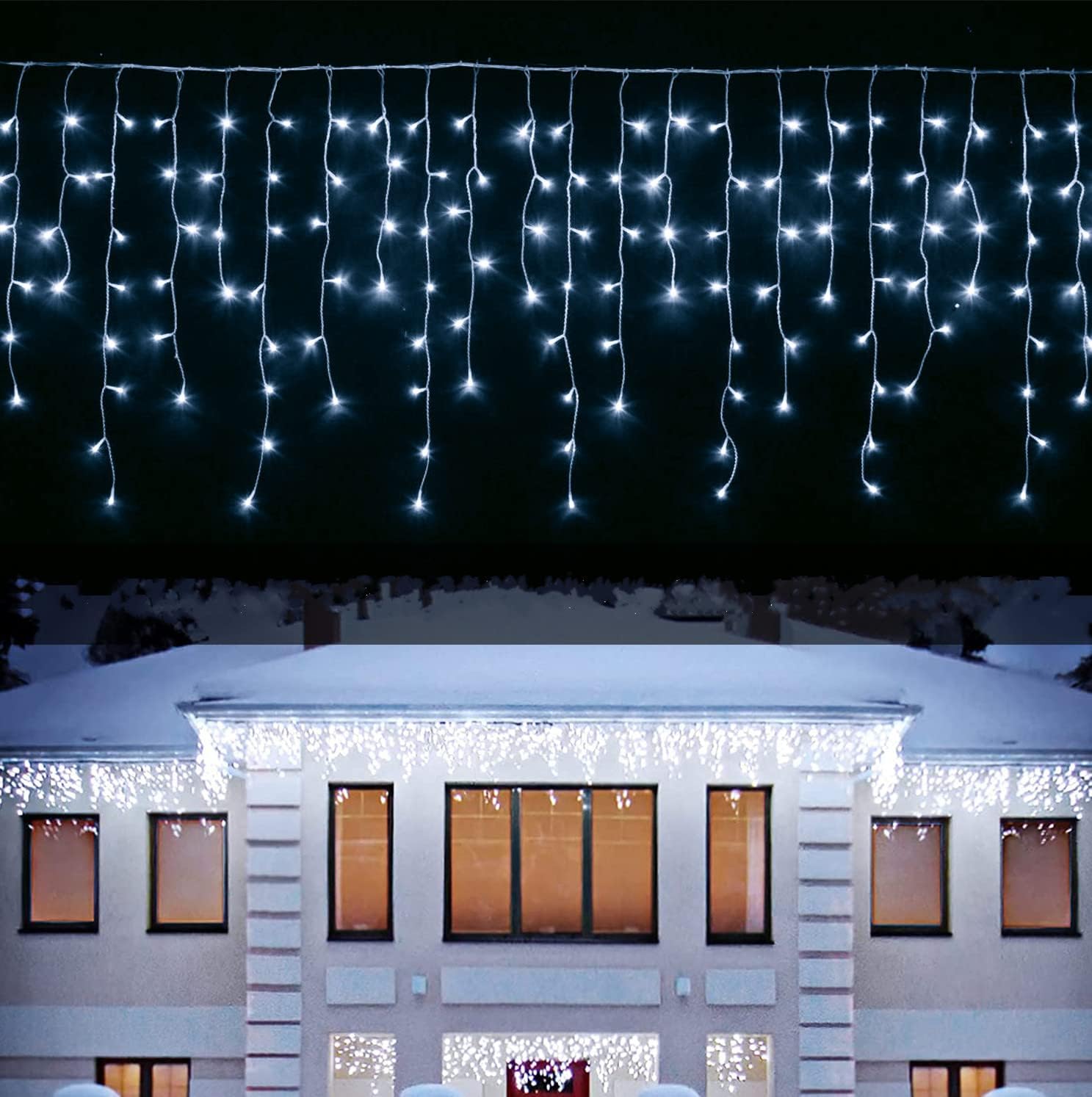 SALCAR LED Eisregen Lichtervorhang 3x1m - 300 LEDs Warmweiß, IP44 Wasserdicht Mit Timer