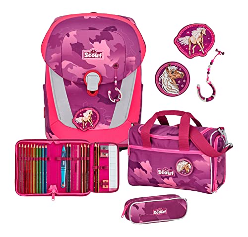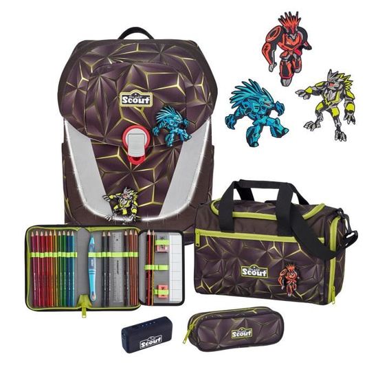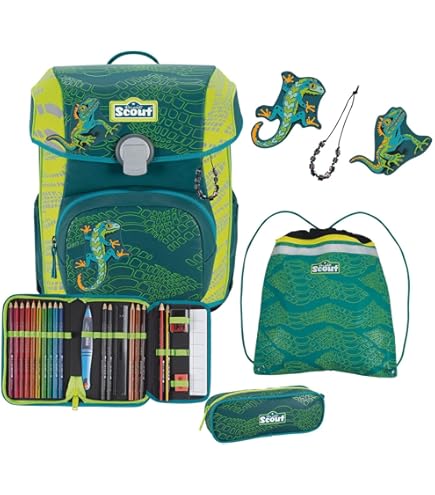 Cool, das SCOUT Set in Dino Hunter-Optik macht Schule! Nicht nur die Farbe ist der Hit - mit den LED-Lichtern vorne und den reflektierenden Flächen wird dein Kind im Dunkeln super gesehen. Das 5-teilige Set hat alles: Ranzen, Federmäppchen, Schlampermäppchen und Sportbeutel. 19,5 Liter Volumen - da passt der ganze Schulkram rein. Und das Gewicht von nur 1470g ist echt leicht für so 'nen robusten Ranzen! Die Schultergurte sind ergonomisch geformt und mega bequem. Mit Brust- und Hüftgurt sitzt alles perfekt. Aus recyceltem PET und komplett ohne PFC - gut für die Umwelt! Im Deckel ist 'n Sichtfach für den Stundenplan, und die Funny Snaps kannst du individuell gestalten. Ob Bücher, Trinkflasche oder Pausenbrot - für alles gibt's 'n Fach. Damit startet dein Kind sicher und stylisch in den Schultag!