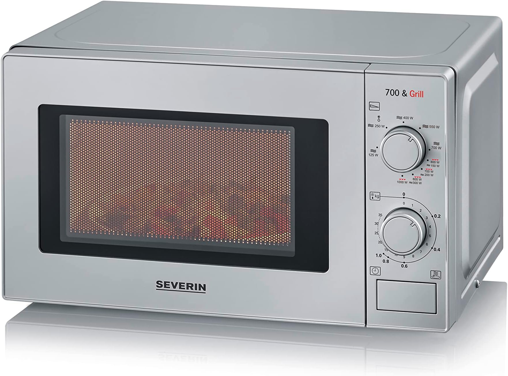 Die vielseitige 2-in-1 Mikrowelle von Severin! Mit 800W Mikrowellenleistung und 1000W Grillfunktion - perfekt zum Auftauen, Erwärmen und Grillen. Inklusive Drehteller (24,5cm) und Grillrost.