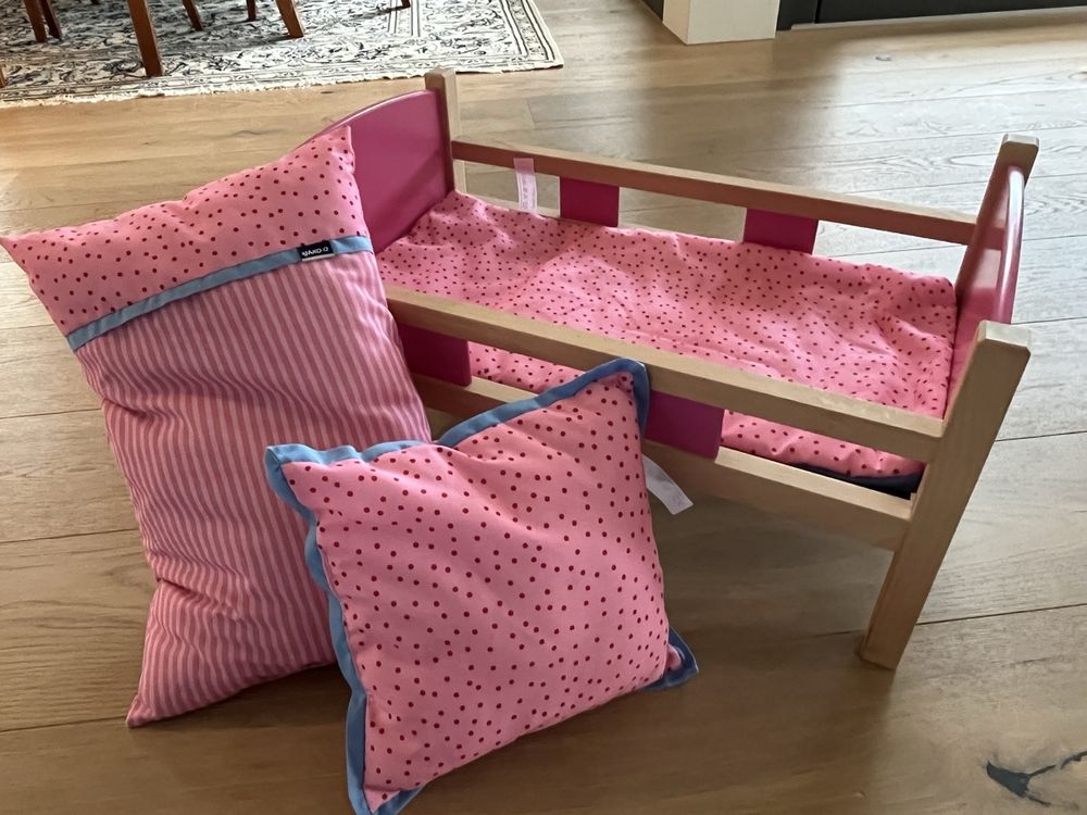 Oh wie süß! Dieses Puppenbett in Kronenform ist ja mal absolut niedlich für die kleinen Puppenmuttis da draußen! Das komplette Set kommt mit nem kuscheligen Kissen und ner passenden Decke im Kirschblüten-Muster - einfach mega gemütlich für die Puppenkinder! Perfekt geeignet für 20cm Puppen, also genau die Standardgröße, die jedes Kind hat. Das Bett ist aus hochwertigem Polyester und misst ca. 30x32cm - also schön großzügig! Die Qualität ist echt top: Ungiftige Materialien, robust verarbeitet und super sicher für Kinder. Aber Achtung: Enthält Kleinteile, also besser nicht für Kinder unter 3 Jahren ohne Aufsicht! Das kronenförmige Design sieht nicht nur royal aus, sondern passt auch perfekt zu anderen Puppenhaus-Möbeln. So wird das Puppenspiel gleich doppelt so spaßig! Einfach aufstellen und die Puppe kann sich wie ne echte Prinzessin fühlen. Perfekt als Geschenk oder zur Erweiterung der Puppenhaus-Einrichtung! Und das Beste: Die Farben sind genau so knuffig wie auf den Bildern - versprochen!