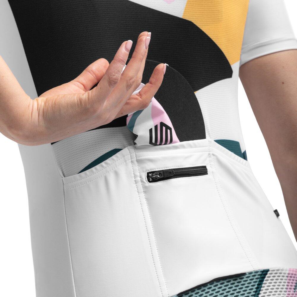 Die 100% aerodynamischen kurzen Ärmel reduzieren den Luftwiderstand und die drei praktischen Rückentaschen bieten Platz für deine Snacks, Geldbeutel oder Handy. Der halbautomatische SBS Full Hidden Zipper mit Anti-Friction Zip Guard kratzt nicht am Hals.