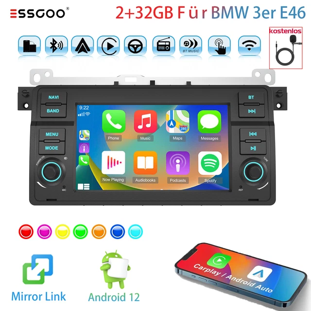 Upgrade deinen alten BMW 3er E46 (1999-2005) mit diesem modernen Android Autoradio! 9 Zoll großer kapazitiver Touchscreen mit Android 13, 2GB RAM und 64GB Speicher - da läuft alles butterweich. Wireless Carplay für iPhone und Android Auto für Android-Smartphones - connecte dein Handy und los geht's! Mit integriertem GPS, WiFi und Bluetooth. Die beiliegende AHD Rückfahrkamera zeigt dir beim Einparken, was hinter dir ist. Lenkradsteuerung funktioniert weiterhin. Einfache Plug & Play Installation - meist ohne Umbau nötig. Streame Musik, nutze Google Maps, mach Handyanrufe - alles über den großen Bildschirm. Sieht aus wie vom Fachmann eingebaut, kostet aber nur einen Bruchteil! Mach aus deinem alten BMW ein modernes High-Tech Auto!