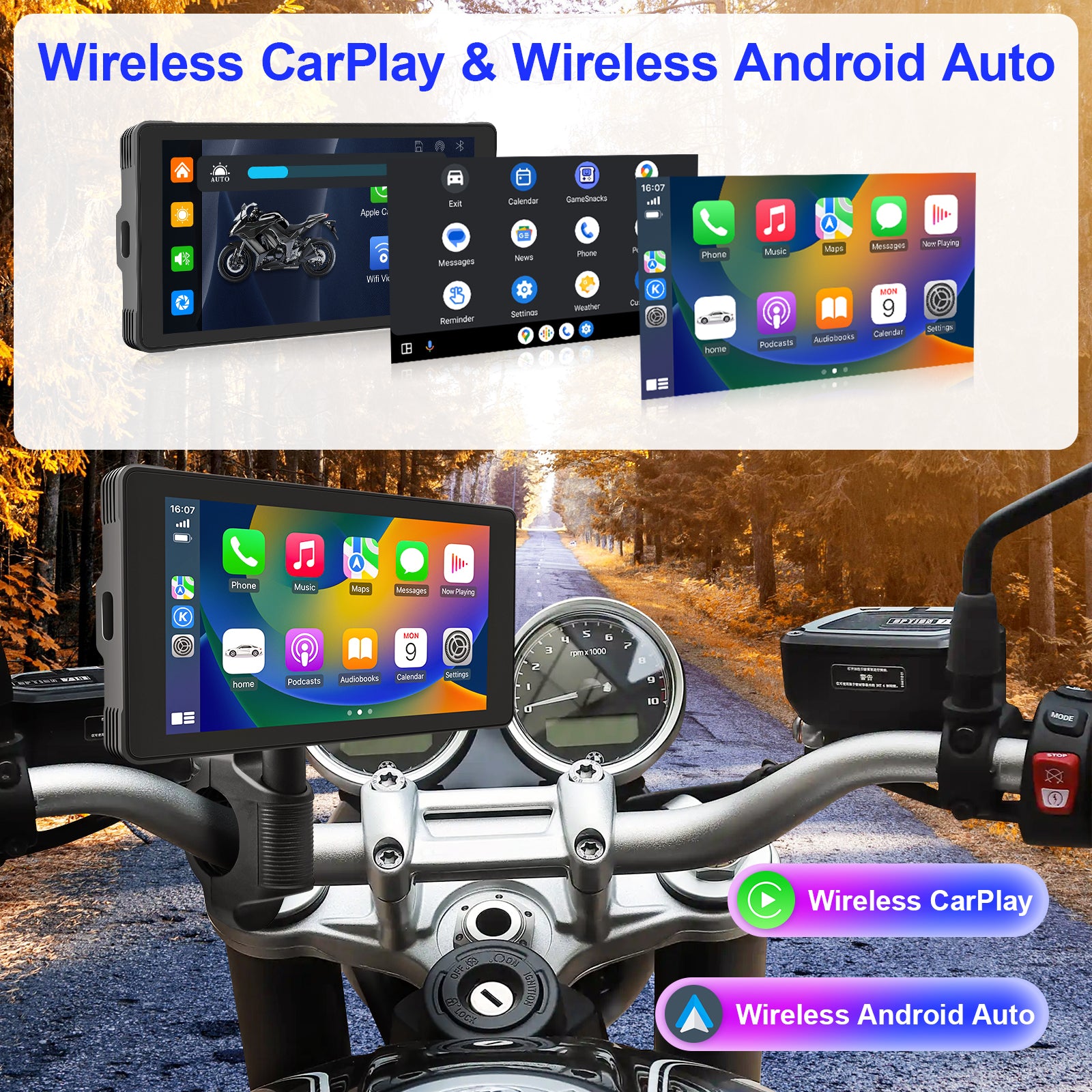 SIXWIN Motorrad Display 5 Zoll - Wireless Carplay Android Auto Wasserdicht
