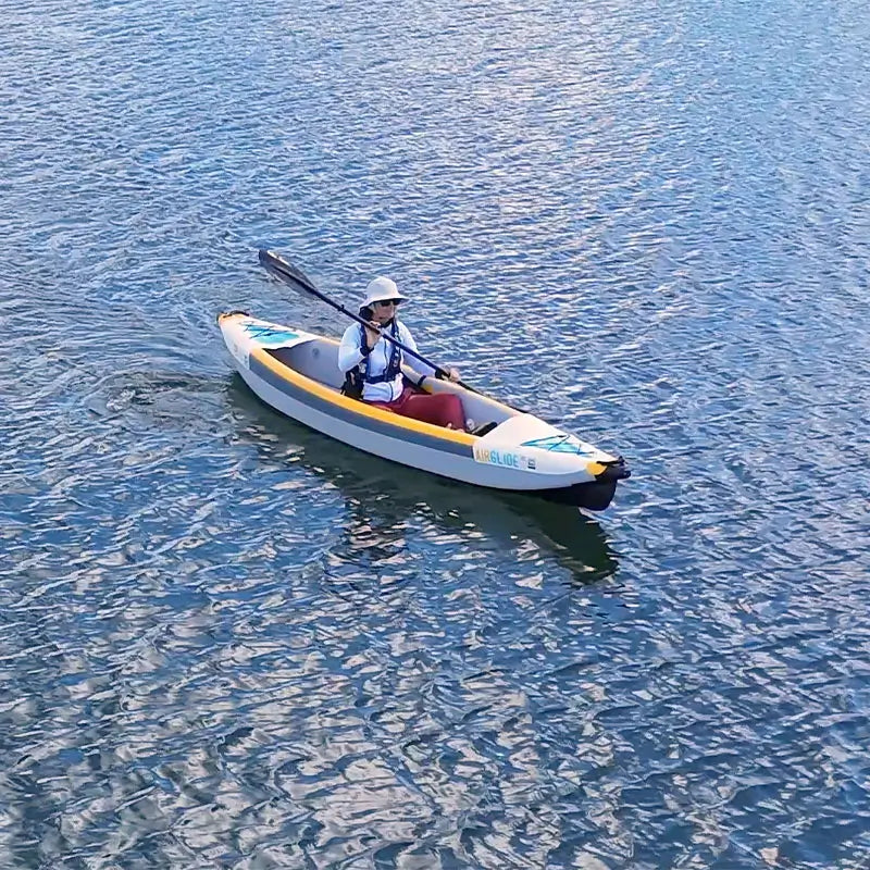 Erlebe unvergessliche Abenteuer auf dem Wasser mit dem SKINHAWK Premium Kajak! Mit 385 cm Länge und 85 cm Breite bietet es genug Platz für dich und dein Gepäck. Die Full Drop-Stitch Technologie und der dreifache Boden machen es stabil, schnell und steif – fast wie ein Festrumpf-Kajak. Tragfähigkeit bis 300 kg, inklusive zwei ergonomischen Sitzen, Finnen, Reparatur-Set und Luftpumpe. Perfekt für Flüsse, Seen oder Meer – und dank kompaktem Packmaß easy zu transportieren. Ob Paddeln, Angeln oder Entspannen – dieses Kajak macht jeden Ausflug zum Highlight. Aufblasen, ins Wasser und los geht's!