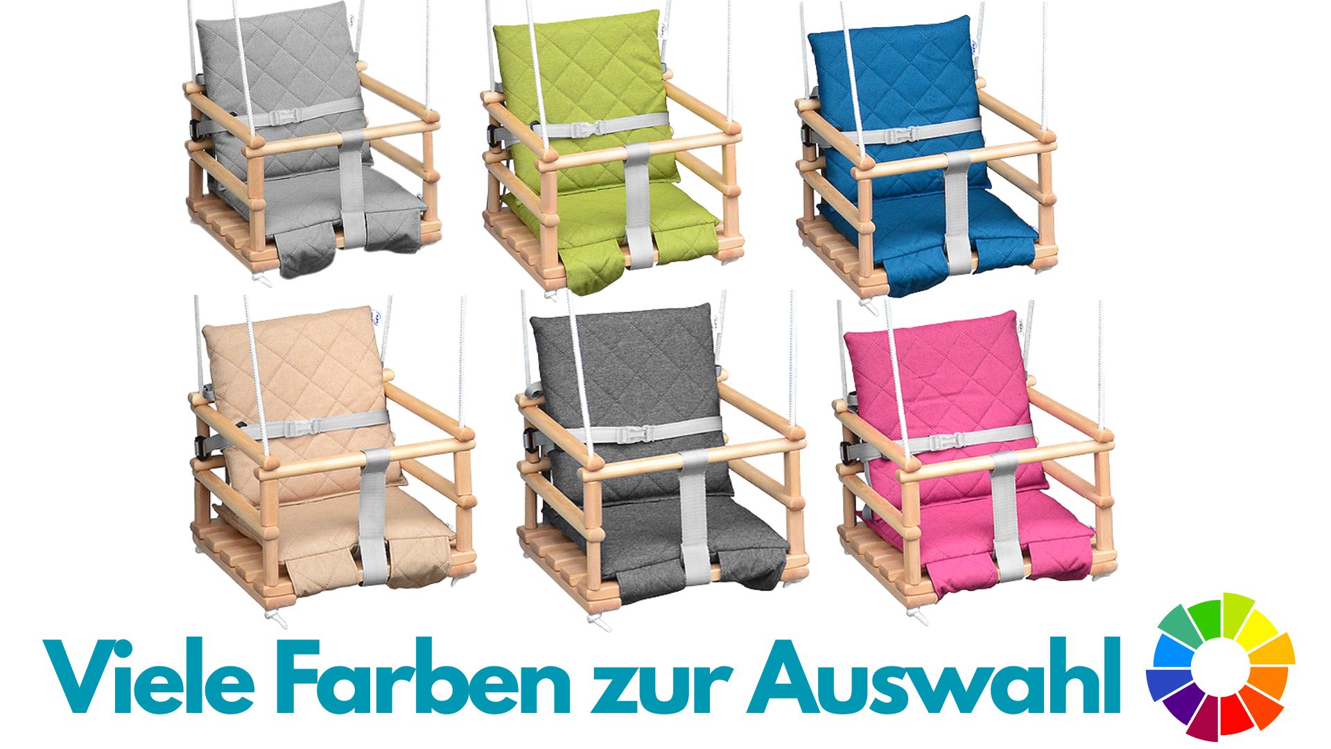 Mama, Papa - diese SKYLINE Holzschaukel macht eure Kinder glücklich! Die 4in1 Schaukel wächst mit eurem Kind mit - von 6 Monaten bis 10 Jahre. Mit praktischem Sicherheitsgurt für die Kleinsten und verstellbar für größere Kinder. Die 7 Meter langen Seile und Metallringe sind schon dabei, ihr müsst euch nur um die Aufhängehaken kümmern. Aus weichem Stoff mit Silikonfüllung und komplett ohne giftige Materialien. Tragkraft bis 50kg - also auch für größere Kinder geeignet. Perfekt fürs Kinderzimmer, Terrasse oder Garten. Einfach montieren und jahrelang Spaß haben! Wichtig: Immer unter Aufsicht von Erwachsenen benutzen.