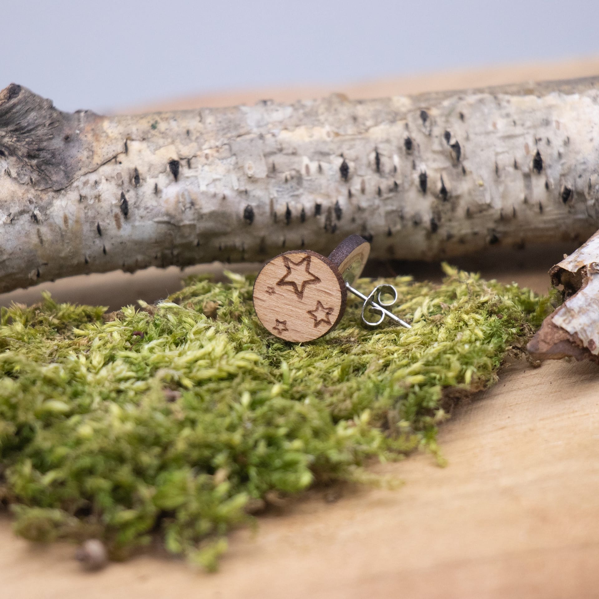 SOFPLATE Holz Ohrstecker 50 Stück Set - Runde Ohrstecker Mit Ohrmuttern Für Schmuckherstellung