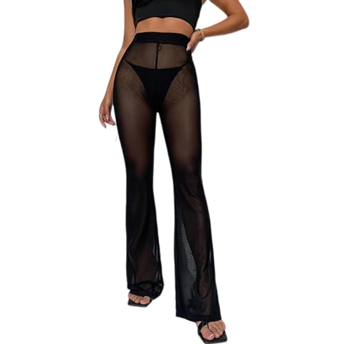 SOLY HUX Damen Gothic Schlaghose Mit Spitze - Y2K Partyhose Mit Schnürung