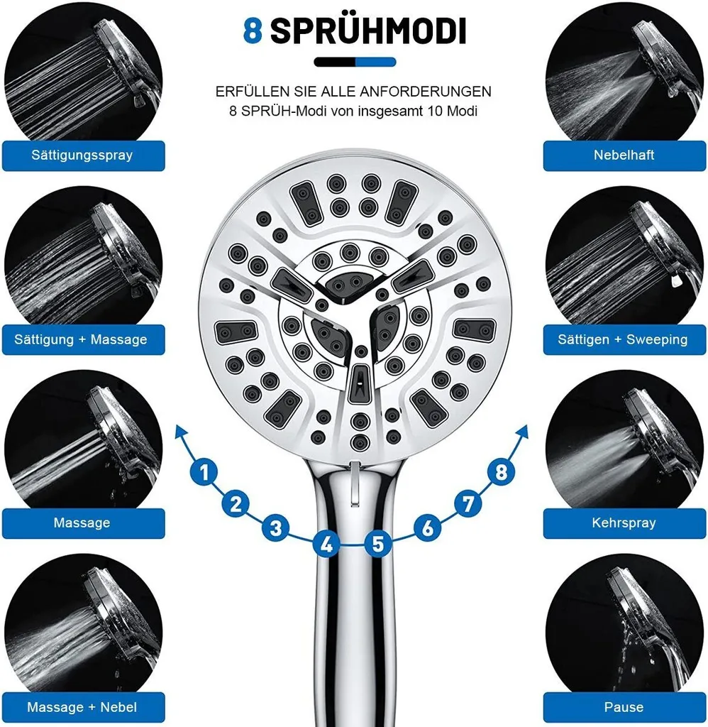 Wellness für dein Badezimmer! Dieser SOPOTUTU Duschkopf mit Hochdruck-Technologie sorgt für ein erfrischendes Duschvergnügen. Mit 5 verschiedenen Strahlarten findest du garantiert deinen Lieblingsmodus. Die verstellbare Basis ermöglicht optimale Positionierung. Aus robustem Metall und Kunststoff - langlebig und korrosionsbeständig. Einfach zu installieren - passt an die meisten Standard-Duschschläuche. Der volle Strahl auch bei niedrigem Wasserdruck macht jeden Morgen zum Erlebnis. Spare Wasser ohne Komfortverlust. Mach deine tägliche Dusche zu einem kleinen Luxus!