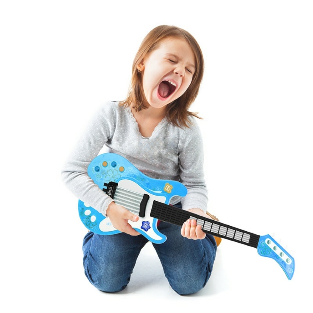 Die perfekte erste Gitarre für kleine Musikstars ab 4 Jahren! Diese SOULONG Kindergitarre im klassischen Design hat die ideale Größe von 21 Zoll - leicht und gut in Kinderhänden zu halten. Aus Massivholz mit Palisander Griffbrett und Brücke für schönen, vollen Klang. In blauer Farbe mit weichen Nylonsaiten, die nicht in die Finger kratzen. Im Lieferumfang: 1x Gitarre, 1x Pick, 1x Saitenset. Fördert das musikalische Interesse und die Hörfähigkeiten deines Kindes. Perfekt um weniger Zeit mit Handy oder Computer zu verbringen und stattdessen kreativ zu werden. Die Giraffenaffen-Gitarre - wenn sich Liebe zu Kindern mit Musik verbindet! Ein ideales Geschenk für kleine Nachwuchsmusiker, die ihre ersten musikalischen Schritte machen wollen. Mach dein Kind glücklich mit diesem tollen Instrument!