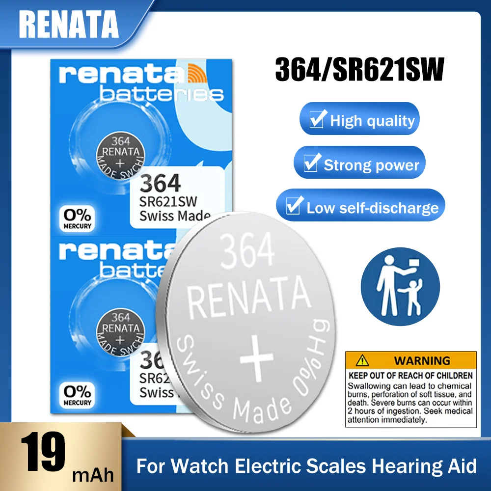 Renata 364 SR621SW Uhrenbatterien - 10 Stück Knopfzellen 1,55V Swiss Made