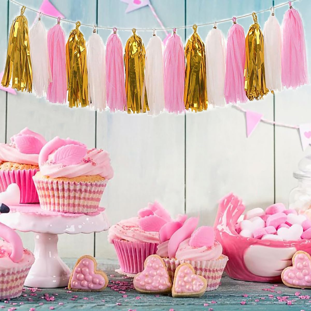 SSKHE 20 Bunte Quasten Girlande - Rosa Orange Gold Für Partydeko Geburtstag Hochzeit