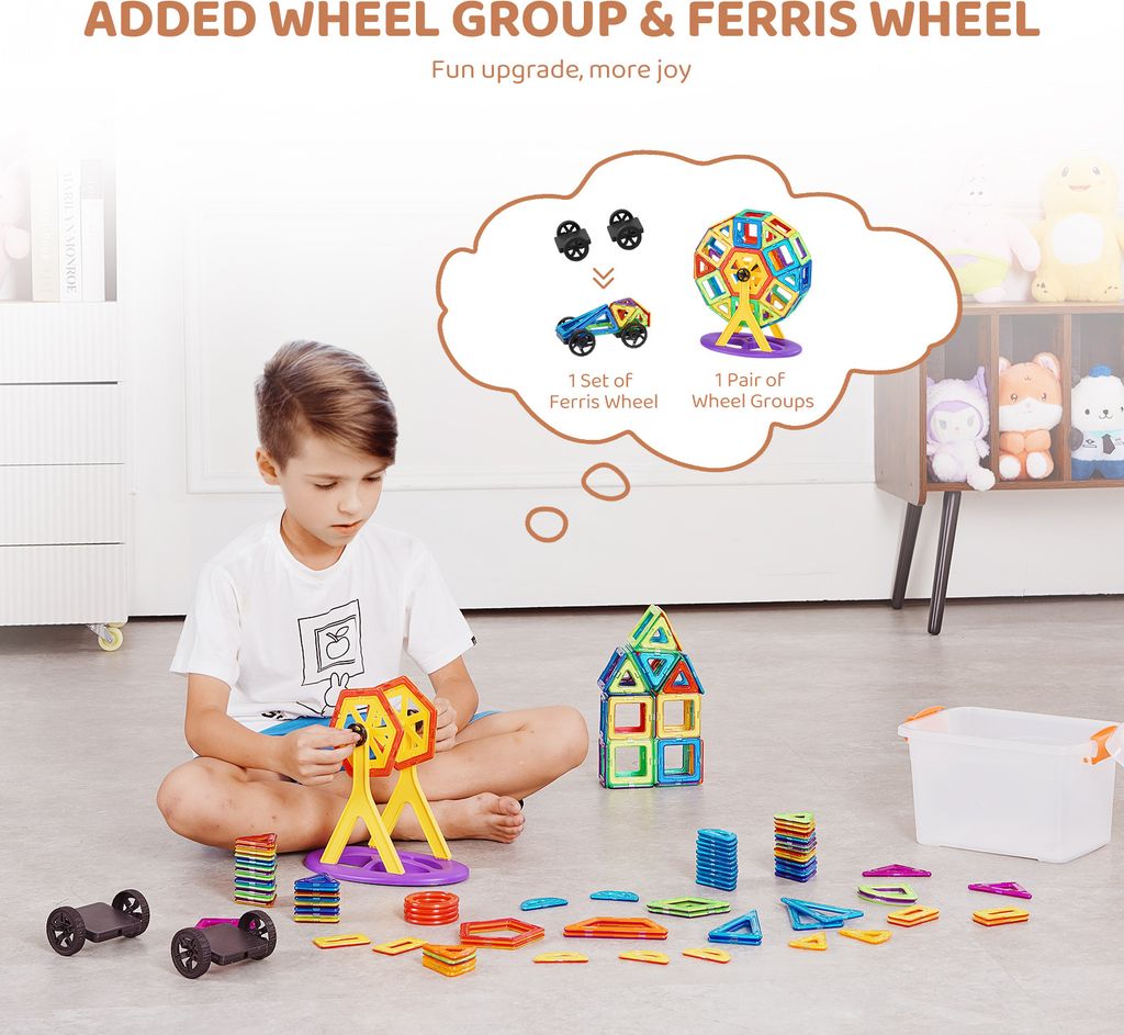VEVOR Magnetische Bausteine 123-teilig - STEM Lernspielzeug Mit Radgruppen & Riesenrad Für Kinder Ab 3