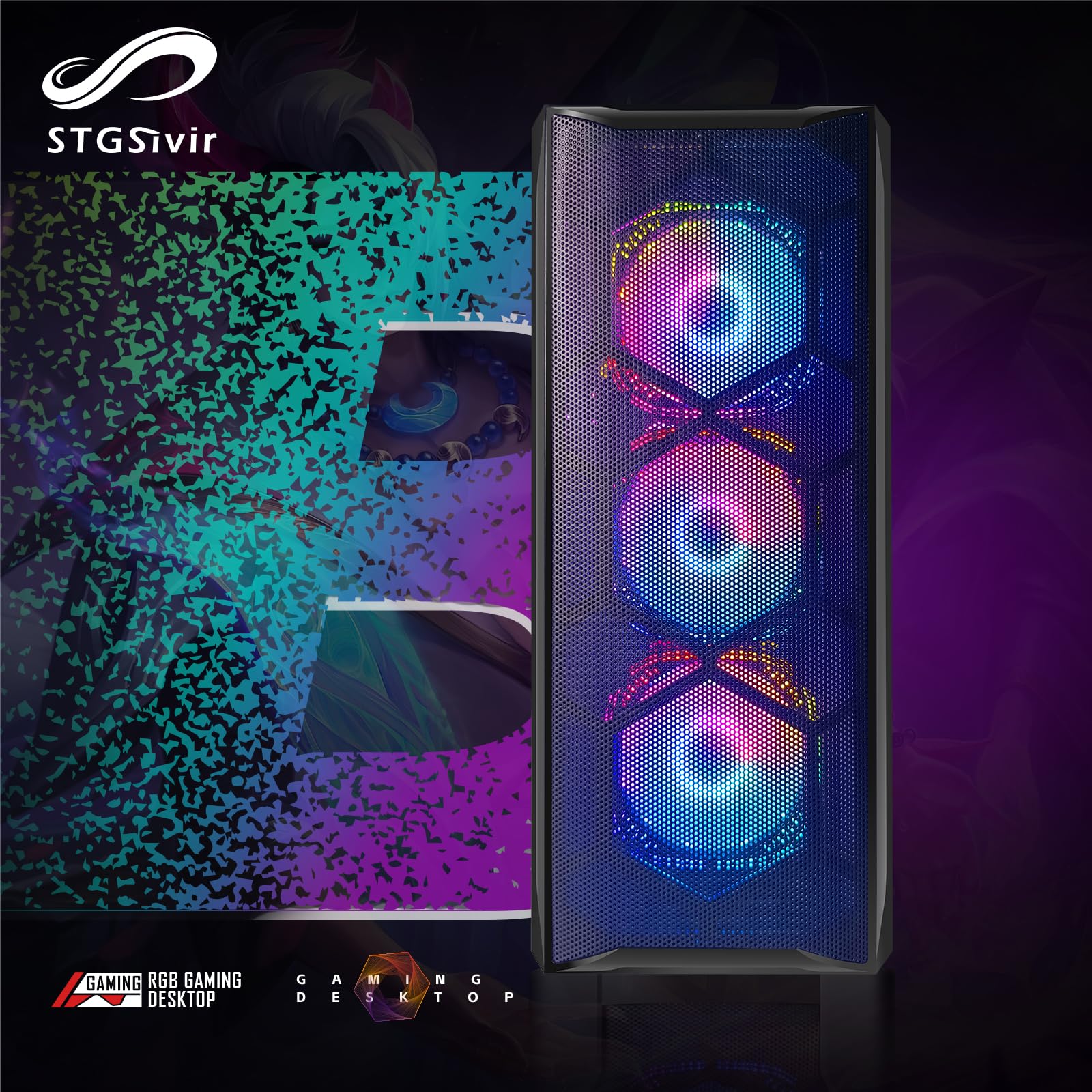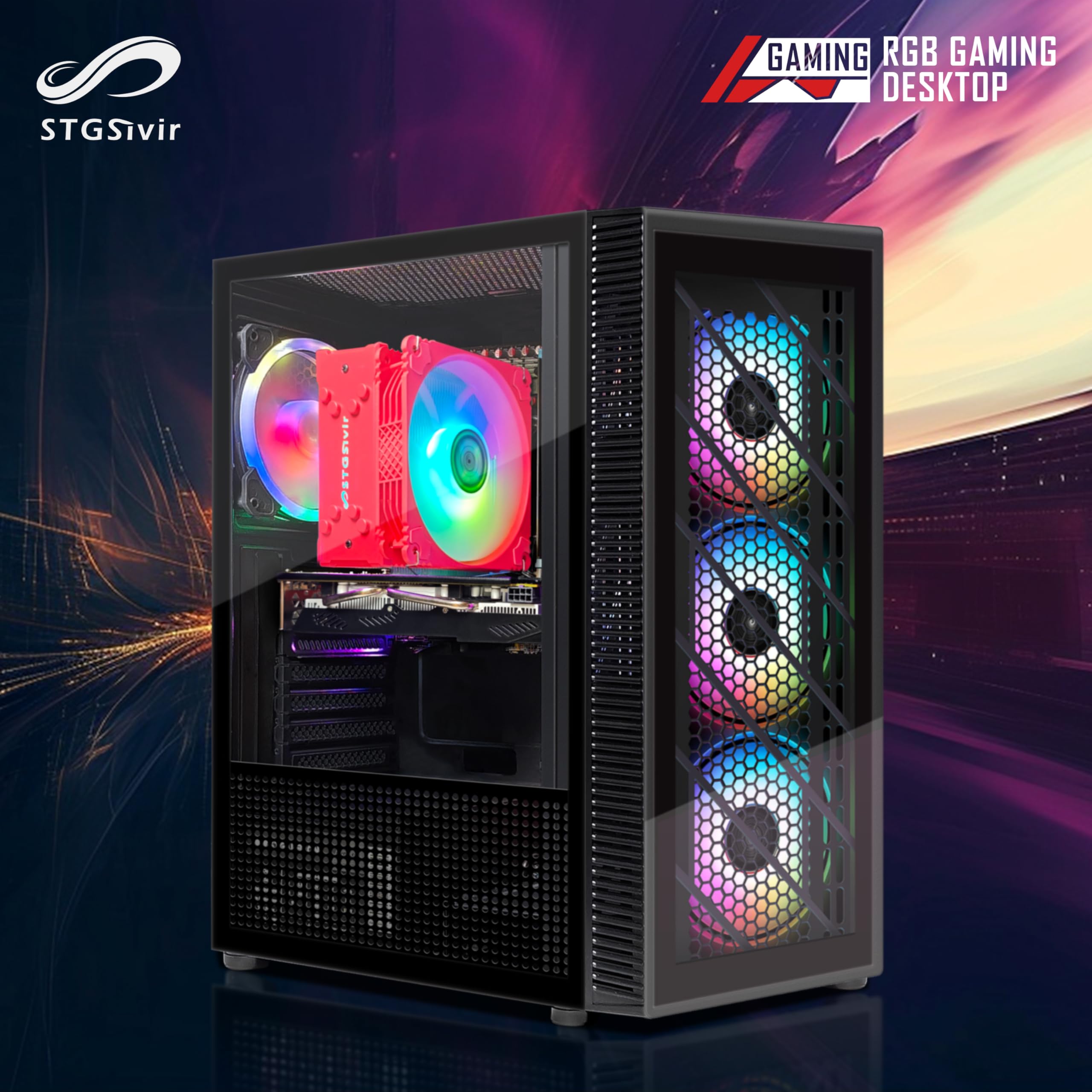STGsivir Gaming PC Mit RX 580 16GB & Intel I5-9400F - 16GB RAM, 512GB SSD, Windows 11 Gaming Computer