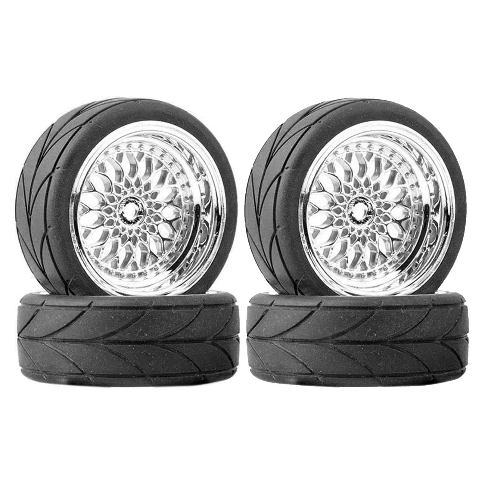 SUAVER RC Reifen Set 1/10 - 64mm Gummireifen Mit Felgen Für On-Road Rennwagen