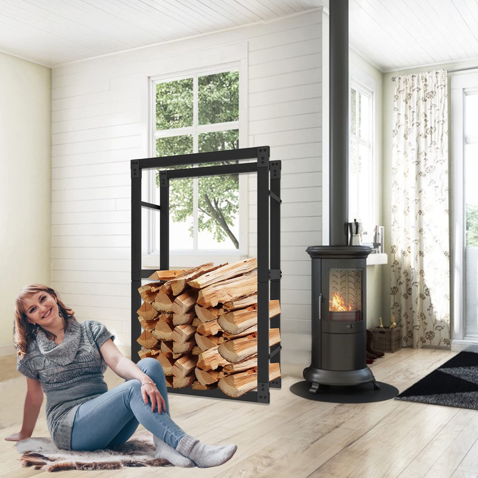 Schluss mit chaotischen Holzstapeln! Dieses Kaminholzregal bringt Ordnung in deine Holzvorräte. Aus robustem Eisen mit schicker Pulverbeschichtung in mattschwarz - das sieht nicht nur gut aus, sondern hält auch ewig. Mit den Maßen 150x100x25cm (gibt's auch in 150x80x25cm) findest du garantiert die passende Größe. Das Tolle: Die Pulverbeschichtung schützt vor Rost und Feuchtigkeit, sodass das Regal auch draußen auf der Terrasse oder im Garten super aussieht. Montage? Kein Problem! Eine Person schafft das locker - einfach nach Anleitung zusammenbauen. Perfekt für Kamin, Kachelofen oder Feuerstelle. Dein Wohnzimmer, Keller oder die Garage bleibt ordentlich und du hast dein Brennholz immer griffbereit. Das schlichte Design passt zu jedem Einrichtungsstil - ob modern, landhaus oder industrial. Hol dir endlich eine praktische Lösung für deine Holzlagereiung! Achtung: Enthält kleine Schrauben - außer Reichweite von Kindern und Haustieren aufbewahren.