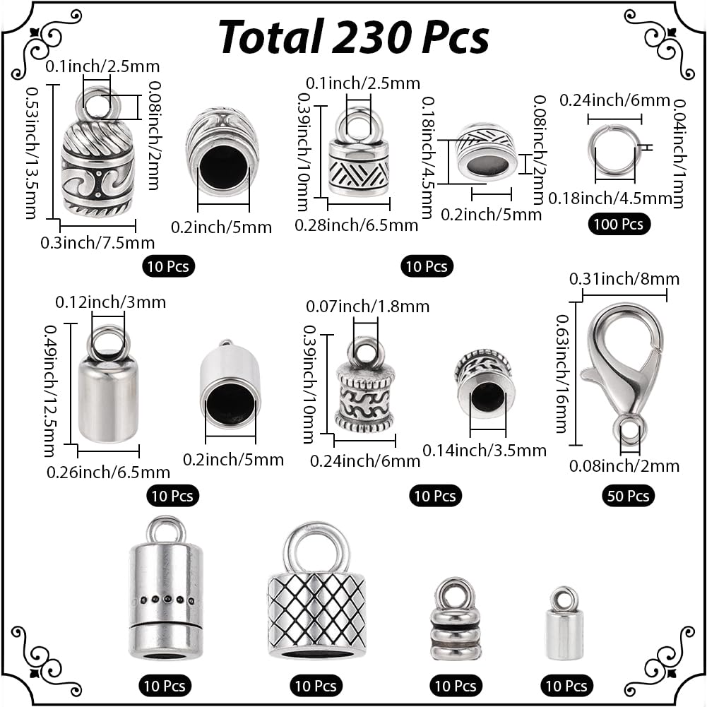 SUNNYCLUE Lederkordelenden Set - 230tlg. Kumihimo Zubehör Für Armbänder