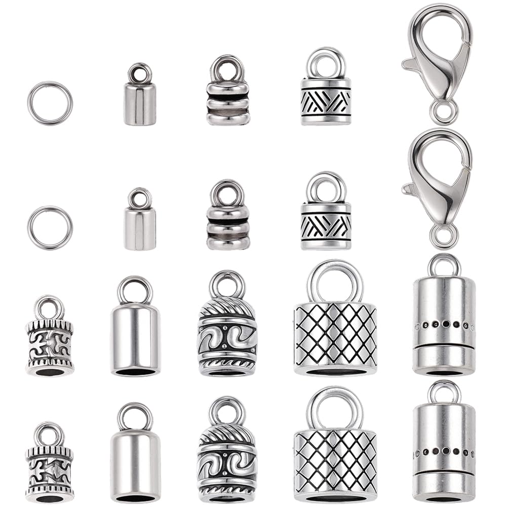 Wow, was für ein umfangreiches Bastelset! SUNNYCLUE liefert dir alles, was du für coole Armbänder brauchst: 80 Kordelenden in 8 verschiedenen Styles, 50 Karabinerverschlüsse und 100 Biegeringe - insgesamt 230 Teile! Alles in vintage Silber-Optik, verpackt in einer praktischen Aufbewahrungsbox. So geht Schmuck basteln: Einfach das Lederband in die Kordelende kleben, mit dem Biegering den Karabiner befestigen - und fertig ist dein persönliches Armband! Die größten Endkappen messen 15mm, die kleinsten 8mm - also für fast jedes Band geeignet. Die Karabiner sind 16mm groß und die Edelstahl-Biegeringe haben 4,5mm Innendurchmesser. Das Material ist eine hochwertige Legierung - robust und langlebig, nichts verbiegt sich leicht. Egal ob für Lederarmbänder, Freundschaftsbänder oder Kumihimo-Geflechte: Der Kreativität sind keine Grenzen gesetzt! Perfekt als Geschenk zu Weihnachten, Geburtstag, Muttertag/Vatertag oder einfach so. Auch super für Workshops oder Bastelgruppen. Mit diesem Set kannst du richtig viele Armbänder machen - für dich und all deine Freunde! Einfach Kleber bereitstellen und loslegen. So macht DIY Spaß!