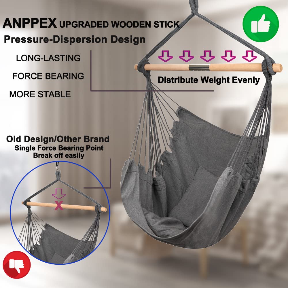 Entspannung pur mit diesem gemütlichen Hängesessel! Der SUNWAY Hängestuhl kommt komplett mit Aufhängeset - inklusive Metallkette, Federkarabinerhaken und Edelstahl-Pad mit Schraube. So kannst du ihn sofort an Decke, Balken oder speziellen Ständern aufhängen. Die extra große Sitzfläche (58,4cm breit, 121,9cm tief) gibt dir genug Platz zum gemütlichen Zurücklehnen. Der 2,5cm dicke Polster mit hochdichtem Schwamm und das atmungsaktive 300g/m² Oxford-Gewebe sorgen für ultimativen Komfort. Die ergonomisch geschwungenen Holzarmlehnen mit glatt geschliffenen Kanten fühlen sich super an und die erhöhte Rückenlehne stützt deinen Kopf perfekt ab. Mit einer Traglast von stolzen 159kg ist der Sessel auch für kräftigere Personen geeignet. Ob auf der Terrasse, im Schlafzimmer, auf der Veranda oder am Pool - dieser Hängesessel wird dein neuer Lieblingsplatz zum Lesen, Ausruhen oder einfach nur Träumen. Die Airtouch-Polsterfasern passen sich deinem Körper an und das spezielle Quilt-Muster sieht nicht nur gut aus, sondern erhöht auch den Komfort. Perfekt für Standard-Deckenhöhen und sowohl für Holz- als auch Betonwände geeignet. Einfach aufhängen, reinsetzen und die Seele baumeln lassen!