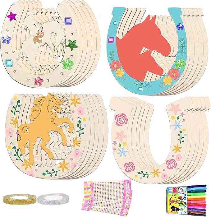 SUPPUIMNT 96 Stück Holz Hufeisen - Bastelscheiben 8,3x9,3cm