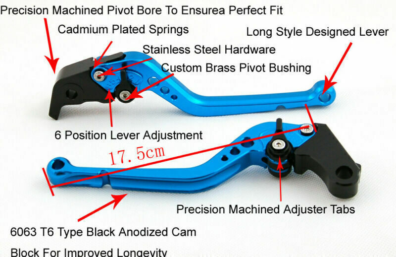 Hey du Biker! Wenn du deine Suzuki Bandit aufmotzen willst, sind diese Brems- und Kupplungshebel genau das Richtige! Hergestellt aus hochwertiger CNC-Aluminiumlegierung, mega stabil und sehen dazu noch richtig sportlich aus. Es gibt sie in kurz (147 mm) für zwei Finger oder lang (175 mm) - die kurze Version ist perfekt für sportliche Fahrer! Die Hebel haben 6 verstellbare Positionen, damit du den Abstand genau auf deine Hand einstellen kannst. Die Oberfläche ist eloxiert, das heißt sie ist kratzfest und sieht auch nach langer Zeit noch gut aus. Passen für Suzuki Bandit GSF600S und GSF 250 von 1996 bis 2007. Einbau ist straightforward - keine Modifikationen nötig! Die raue Oberfläche gibt dir auch bei nassen Händen guten Grip. Mach deine Maschine noch individueller und fahr sicherer mit diesen Qualitätshebeln. Aber denk dran: Vor dem Kauf unbedingt Modell und Baujahr deiner Maschine checken!
