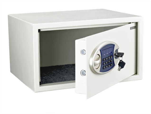 Der Corby Whitehall Digital Safe ist perfekt für Hotelzimmer oder zu Hause! Aus massivem Stahl mit schwarzer Pulverbeschichtung - richtig stabil. Platz für Laptops bis 14 Zoll und iPads. Mit LED-Innenbeleuchtung, siehst du alles perfekt. Teppichboden innen schützt deine Wertgegenstände. Die Tür ist federunterstützt - öffnet sich super leicht. Digitales Bedienfeld mit LED-Anzeige und Ton. Wird mit Schlüssel und Batterien geliefert. Der elektronische, motorisierte Schließmechanismus bietet maximale Sicherheit. Einfach Code einstellen und deine Sachen sind safe. Ideal für Hotels, aber auch perfekt für die eigenen vier Wände!