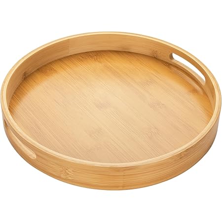 Samfox Bambus Tablett Rund - Holz Serviertablett Für Tee & Snacks 24cm
