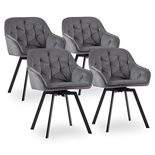 CLIPOP 4er Set Samt Drehstühle - 360° Drehbar, Bis 120kg Belastbar, Bequem