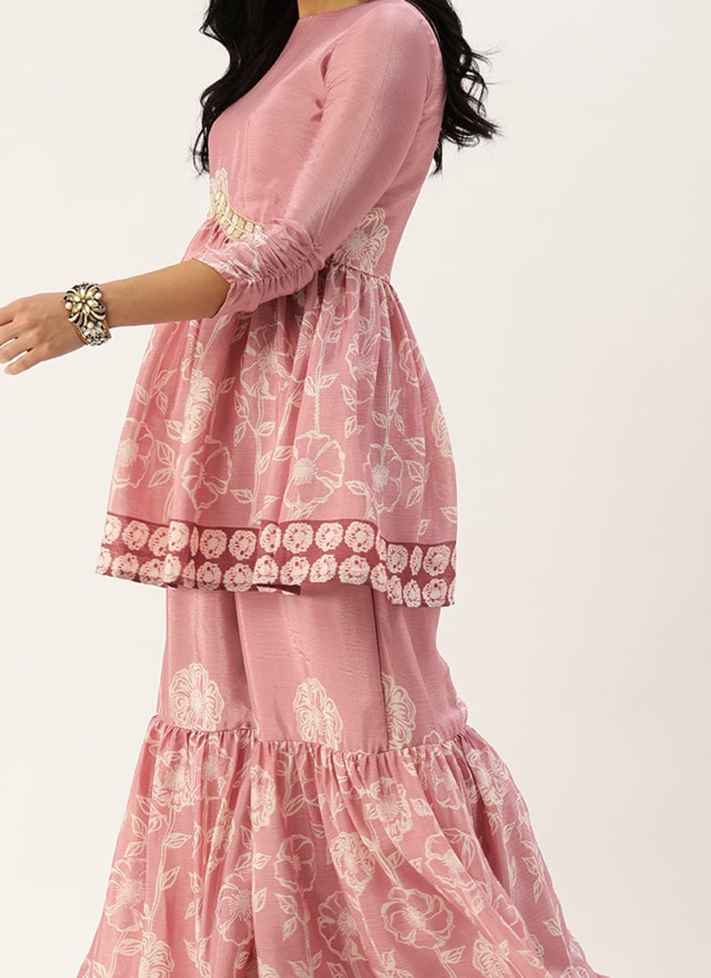 TRENDMALLS Damen Samt Salwar Anzug Set - Rosa Mit Stickerei Inklusive Dupatta