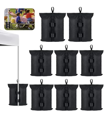 Bei Wind und Wetter halten diese Sandsäcke deinen Pavillon oder dein Zelt sicher am Boden! Das Set mit 8 Stück ist perfekt für größere Konstruktionen. Einfach mit Sand oder kleinen Steinen befüllen und schon hast du das ideale Gewicht.