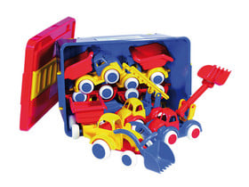 Perfektes Sandkasten-Set für kleine Baustellen-Fans! Diese 8 Fahrzeuge aus Biokunststoff sind umweltfreundlich und machen im Sandkasten richtig Spaß. Bagger, Laster und Co. - alles dabei was kleine Hände brauchen um tolle Sandburgen zu bauen.