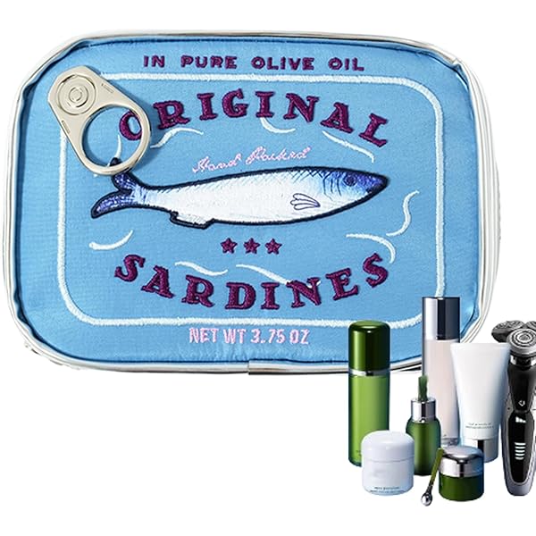 Wie cool ist das denn? Diese Kosmetiktasche sieht aus wie eine echte Sardinendose! Mit detailreicher Stickerei und hochwertigem PU-Leder. Maße 15,5x11x4,5cm - perfekt für unterwegs. Innen viel Platz für Lippenstift, Lidschatten, Pflegeprodukte. Robust verarbeitet und leicht zu reinigen. Der Reißverschluss funktioniert super. Ein echter Hingucker in deiner Handtasche oder im Badezimmer. Perfekt als Geschenk für Beauty-Lover oder alle, die originelle Accessoires lieben. Bringt Lächeln ins Gesicht!