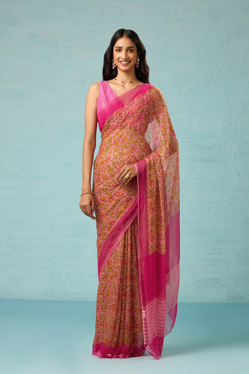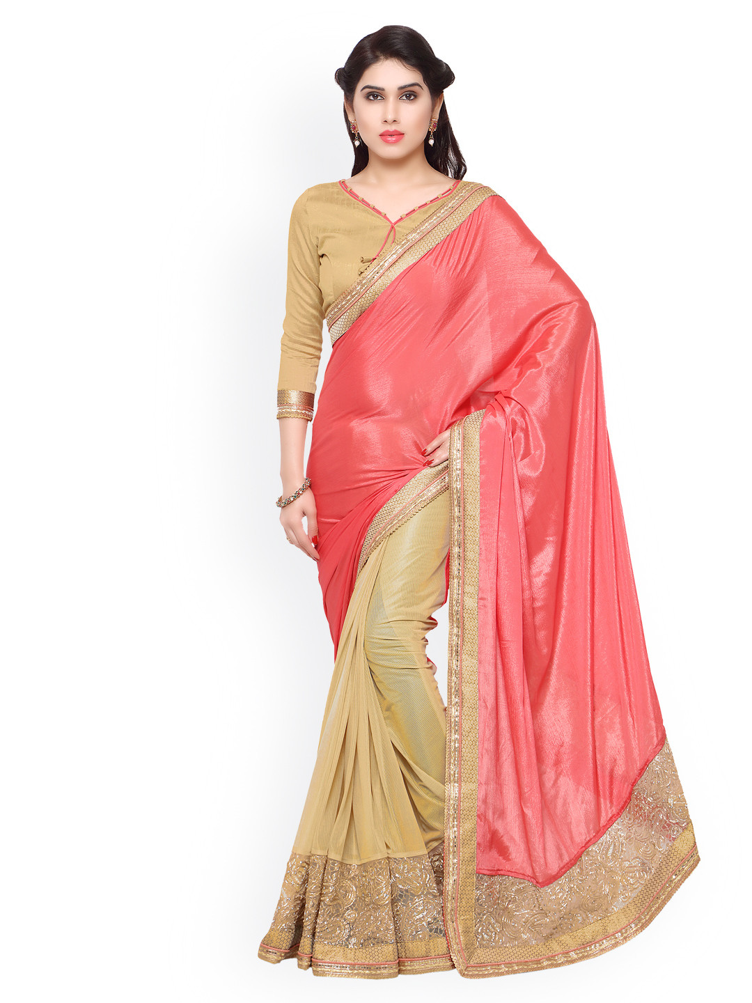 Indischer Damen-Saree Aus Satin & Krepp - Mit Bluse In Zeitloser Eleganz