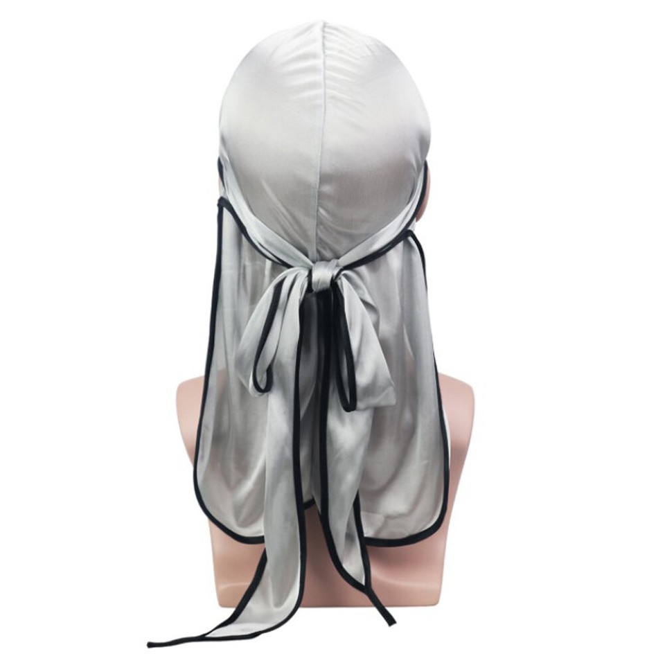 Hey, falls du deine Frisur mal so richtig in Schuss halten willst - dieser DuragPro Seiden-Durag ist genau das Richtige! Aus 100% Premium-Satin gemacht, superweich und atmungsaktiv. Deine Haare bleiben dadurch gesund und glänzend, ohne Frizz oder Schäden.\n\nWas ich mega praktisch finde: Der Schwanz ist extra lang und breit, damit alles besser abgedeckt ist und nichts verrutscht. Ob Zöpfe, Dreads oder 360 Wellen - der Durag hält alles perfekt in Form. Und das Beste: Er sieht auch noch richtig stylisch aus!\n\nTrag ihn einfach als Stirnband beim Schlafen oder als modisches Accessoire im Alltag. Der ergonomische Sitz ist super bequem, verursacht keine Kopfschmerzen und der Stoff reduziert Reibung und statische Aufladung.\n\nInklusive Geschenkverpackung - ideal also auch als Mitbringsel für Freunde oder Familie. Einfach von Hand waschen und trocknen lassen, schon ist er wieder einsatzbereit. Egal ob für's tägliche Styling oder besondere Anlässe - mit diesem Durag machst du nichts falsch!