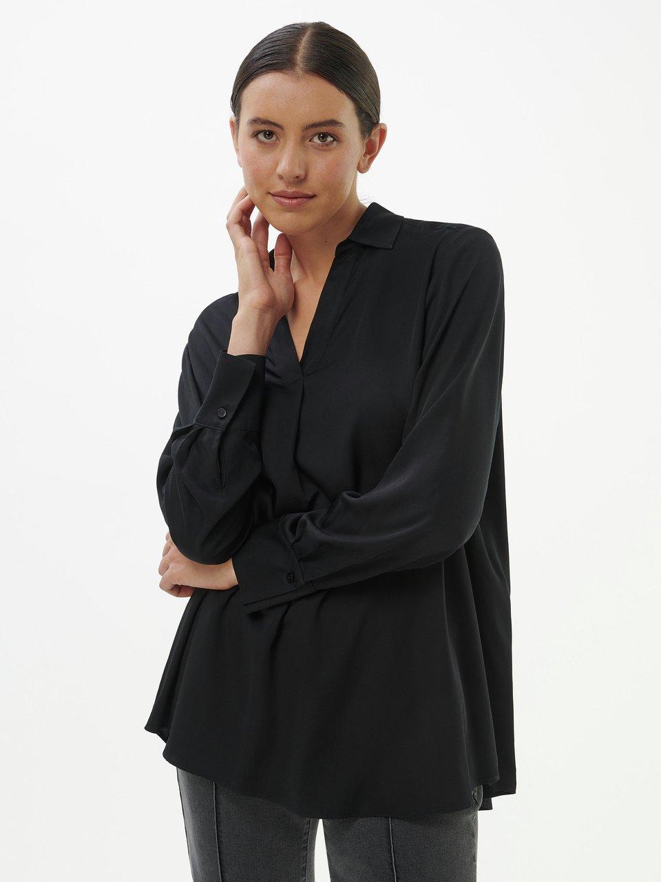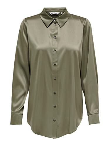 Damen Bluse Satin V-Ausschnitt Langärmelig - Elegante Business Bluse Mit Kragen