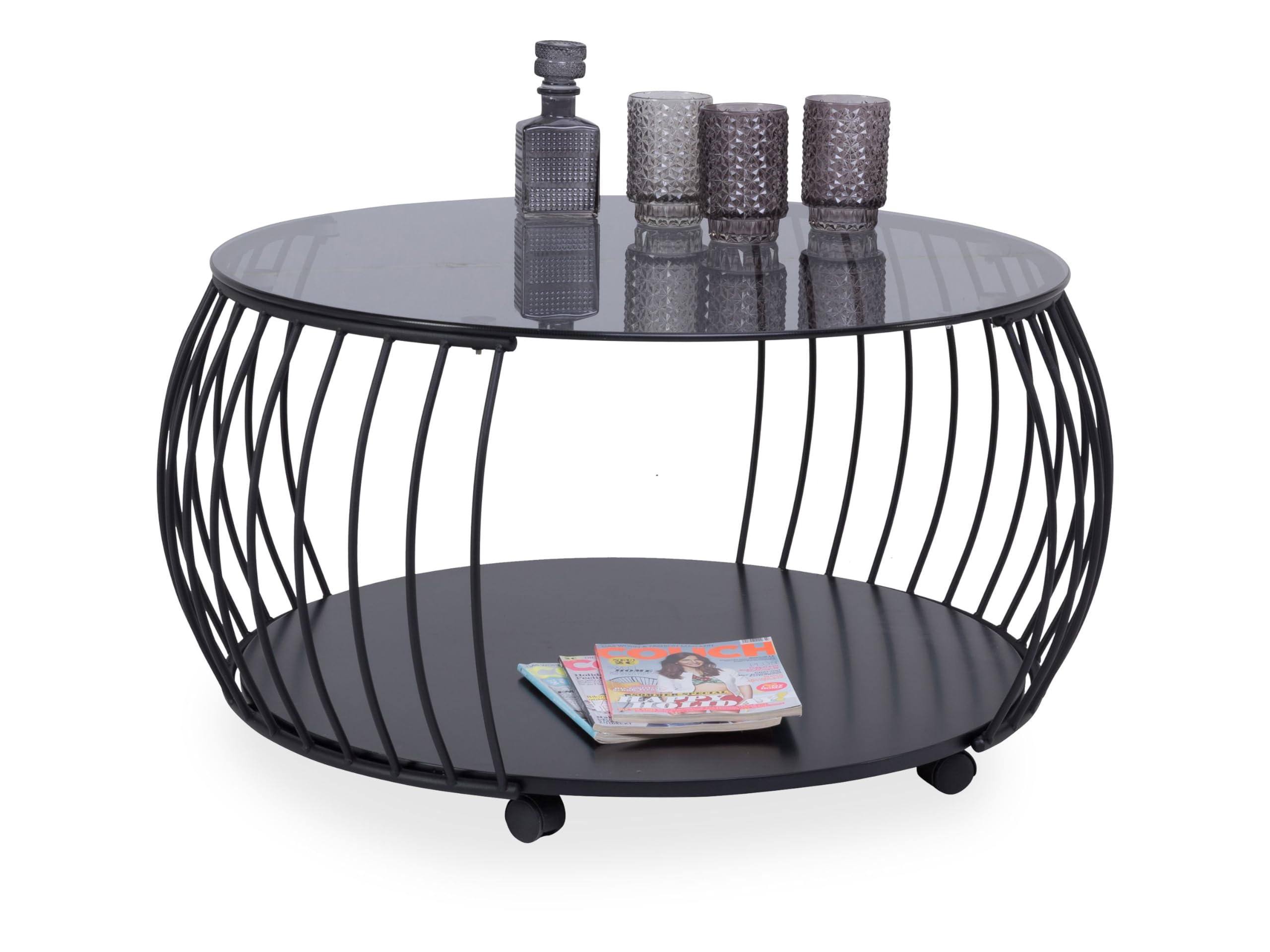 M2 Kollektion 2-Satz Tisch Lou - Glas Beistelltische 80cm & 60cm Durchmesser