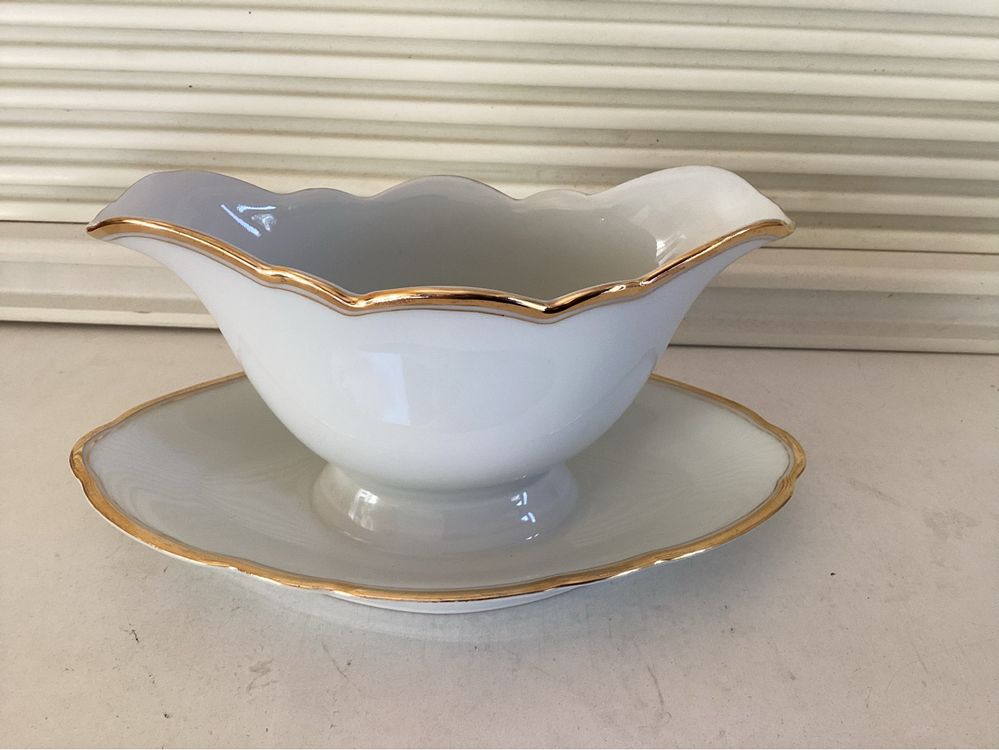 STOBAZA Keramik Sauciere Mit Goldrand - Weiße Soßenschüssel Für Dressings