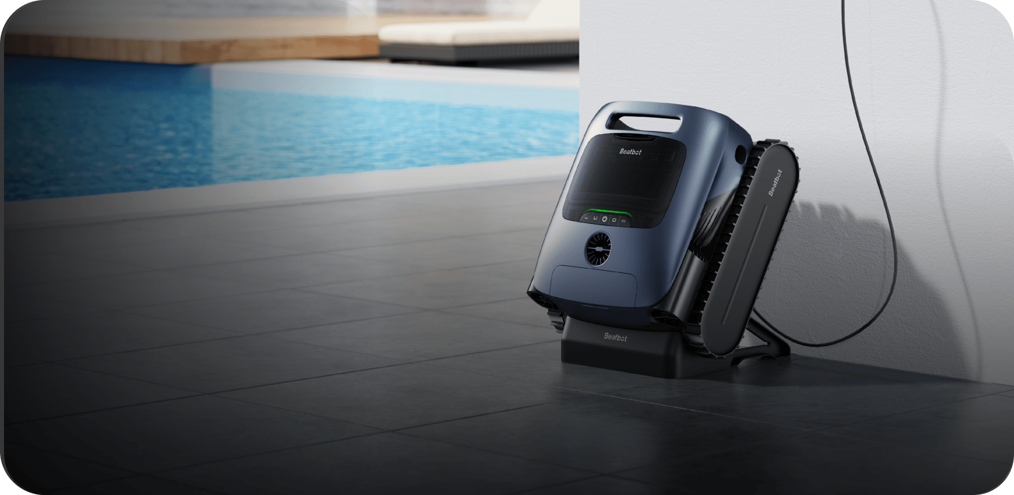 Schluss mit mühsamer Poolreinigung! Der Beatbot AquaSense ist dein smarter Helfer, der alles alleine macht. Vollkommen kabellos saugt er Boden, Wände und Wasserlinie - und das bis zu 3 Stunden am Stück!\n\nDas Besondere: Die intelligente Navigation! Mit 15 Sensoren und KI-Algorithmen erkennt der Roboter deinen Pool und reinigt systematisch. An Wänden fährt er im N-Muster, am Boden im S-Muster - so wird wirklich jede Ecke blitzsauber.\n\nMit 5500 GPH Saugleistung ist er ein echter Kraftprotz. Selbst gebogene Wände sind kein Problem. Der 150-μm Filter fängt selbst feinsten Schmutz. Und ja, er funktioniert auch in Salzwasser-Pools!\n\n• Saugleistung: 5500 GPH\n• Laufzeit: Bis zu 3 Stunden\n• Poolgröße: Bis 200m²\n• Für alle Pooltypen: Eingelassen, freistehend, Salzwasser\n• Smart Navigation: N- und S-förmige Reinigungsmuster\n• Kabellos & einfach zu handhaben\n• Inklusive Feinfilterkorb\n\nEinfach einschalten und den Roboter arbeiten lassen - mehr Freizeit, weniger Arbeit!